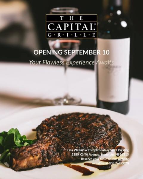 ワイキキマーケットが入っているコンドミニアムのリリアワイキキ1階に新しいステーキハウス「キャピタルグリル」が9月10日にオープンした。