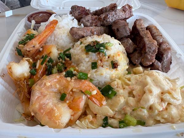 ロコモコドライブインでは、ロコモコ、ガーリックシュリンプ、バーベキューミックスプレートなど、ハワイのローカルが大好きなメニューが勢揃いする。