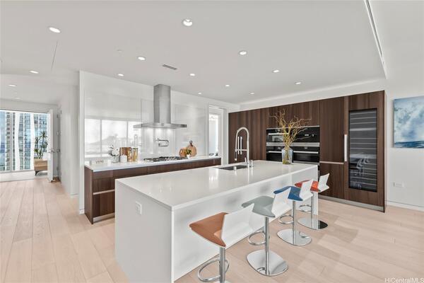 本物件は、室内約2,017 sqft(約187㎡)、ラナイ約77 sqft(約7㎡)というゆとりある広さに加えて、ダイヤモンドヘッド、紺碧の太平洋、マリーナ、緑豊かな山並み、ホノルルの街並みといった4方向のパノラマビューが魅力。