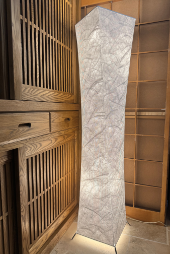 フロアランプもデザインが多数。こちらの和モダンデザインは明るさ調整できる。