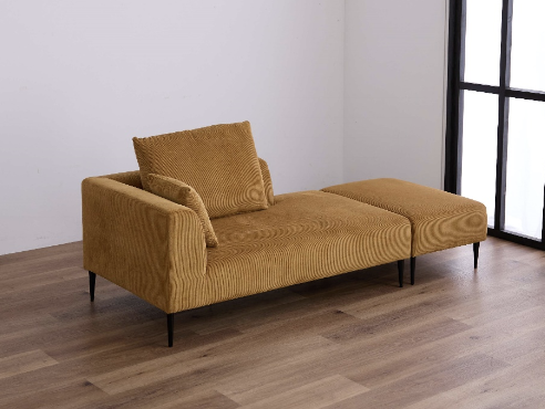 片側にアームレストとバックレストのついたカウチ。座っても、寝転んでも使えるフレキシブルなデザイン。