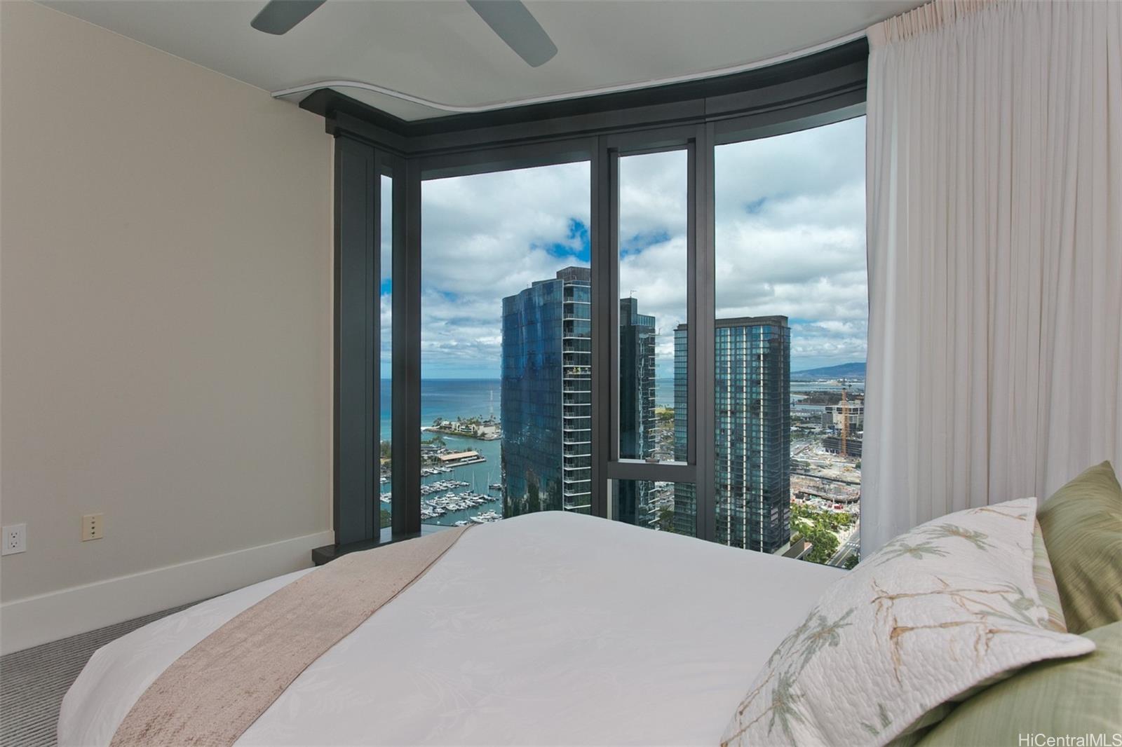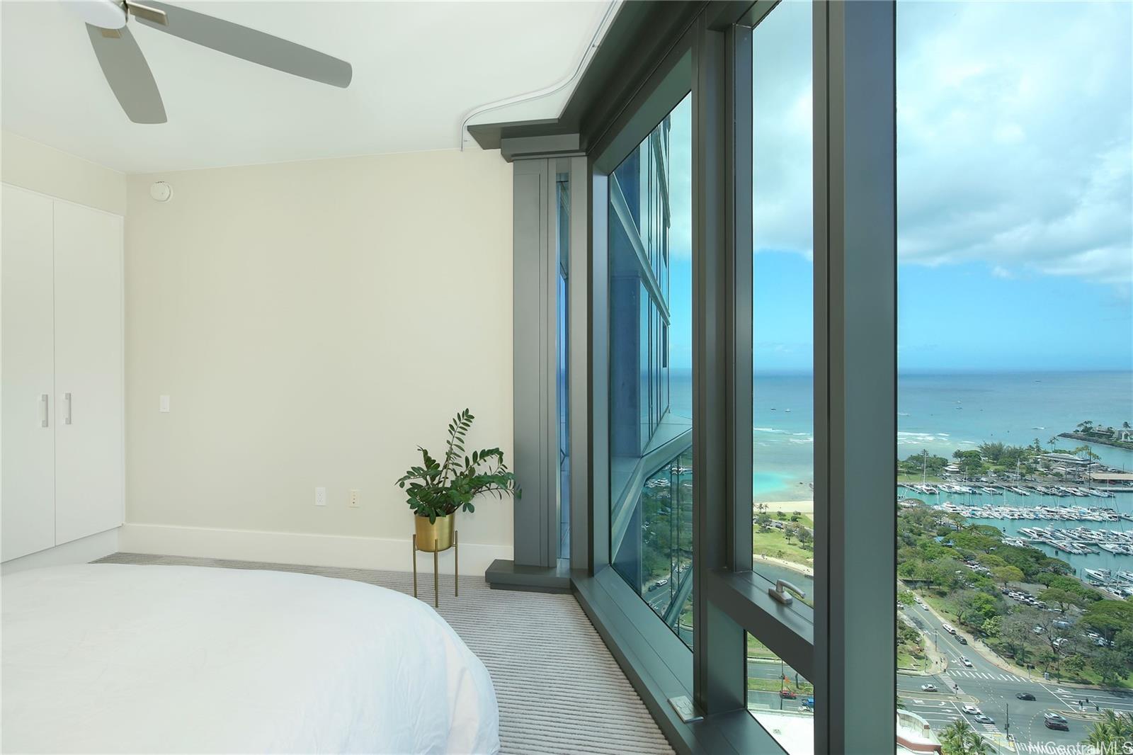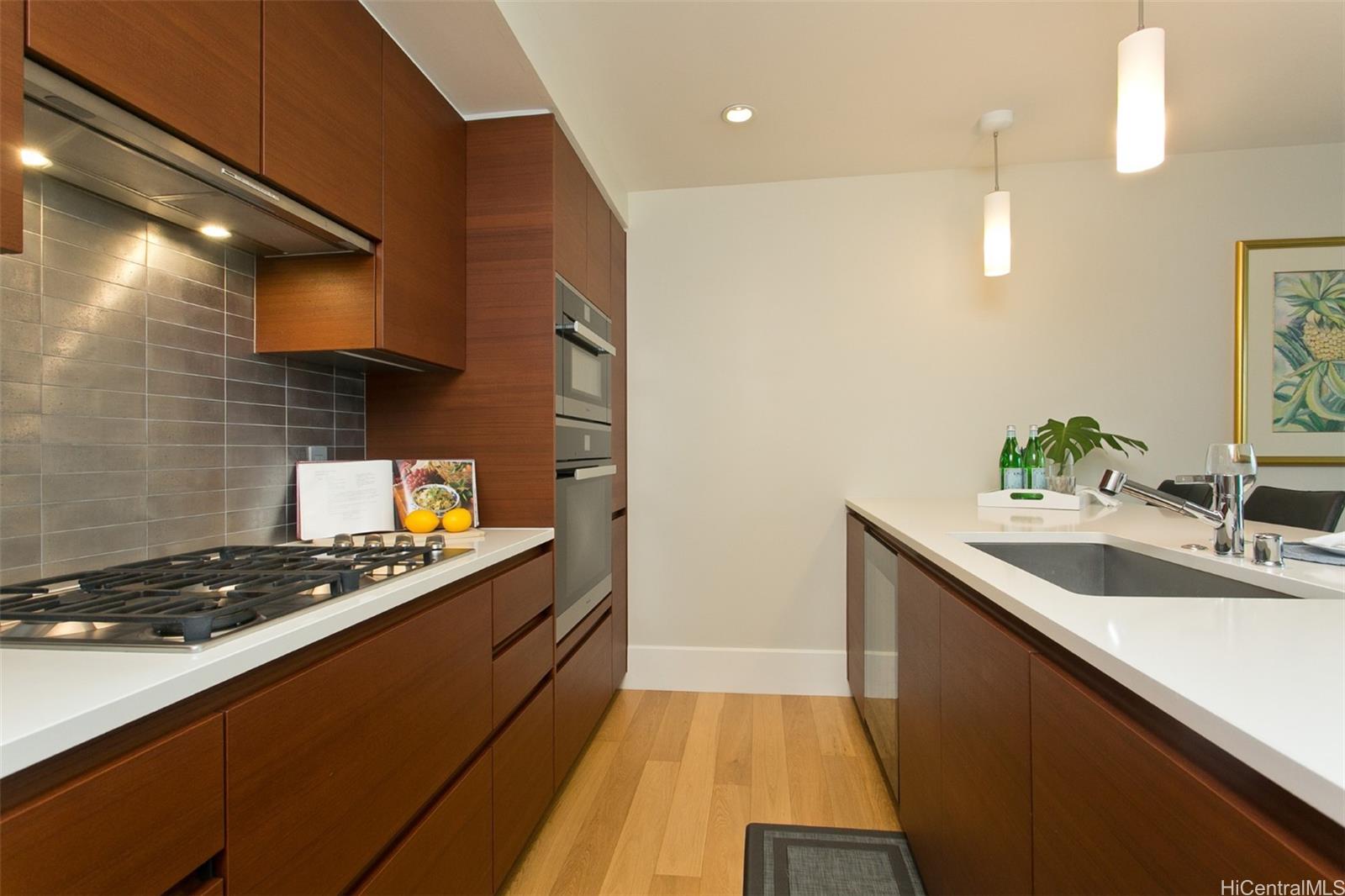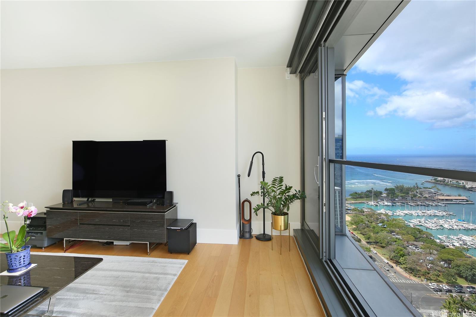 High-floor 1BR unit at Anaha, Honolulu’s premier luxury condo, with stunning views of Kewalo Basin and city skyline. Features a modern kitchen with Studio Becker cabinets and Miele appliances, plus an upgraded bath with deep soaking tub and Toto Neorest washlet. Includes a storage locker and home warranty valid through 7/29/2028. Located in Ward Village, across from Whole Foods and near Ala Moana Beach and Shopping Center. Residents enjoy world-class amenities: iconic cantilevered pool, ocean-view gym, sauna, theater, party room, library, golf simulator, BBQ cabanas, tennis/pickleball/volleyball courts, dog park, playground, and 24/7 security with concierge. Anaha is LEED-certified with energy-saving features. Ideal for locals and international buyers seeking luxury, convenience, and lifestyle in the heart of Honolulu.