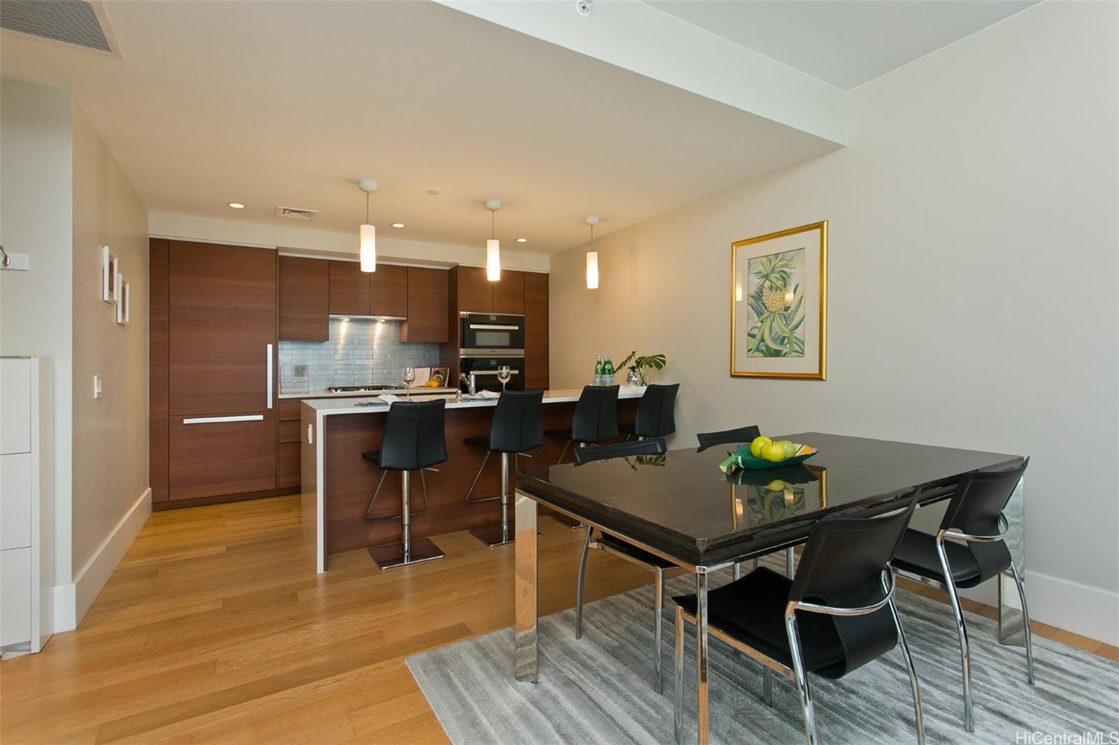 ホノルル屈指の高級コンドミニアム、アナハの高層階に位置する1ベッドルームユニット。ケワロ盆地と街のスカイラインの絶景を堪能できます。スタジオベッカーのキャビネットとミーレの家電製品を備えたモダンなキッチン、深めのバスタブとTOTOのネオレストウォシュレットを備えたアップグレードされたバスルームを備えています。収納ロッカーと2028年7月29日まで有効な住宅保証が含まれています。ワードビレッジに位置し、ホールフーズの向かい、アラモアナビーチとショッピングセンターにも近接しています。居住者は、象徴的なカンチレバープール、オーシャンビューのジム、サウナ、シアター、パーティールーム、図書室、ゴルフシミュレーター、バーベキューカバナ、テニスコート、ピックルボールコート、バレーボールコート、ドッグパーク、プレイグラウンド、そしてコンシェルジュによる24時間体制のセキュリティなど、ワールドクラスのアメニティをお楽しみいただけます。アナハはLEED認証を取得しており、省エネ機能も備えています。ホノルルの中心部でラグジュアリー、利便性、そしてライフスタイルを求める地元の人々や海外の購入者に最適です。