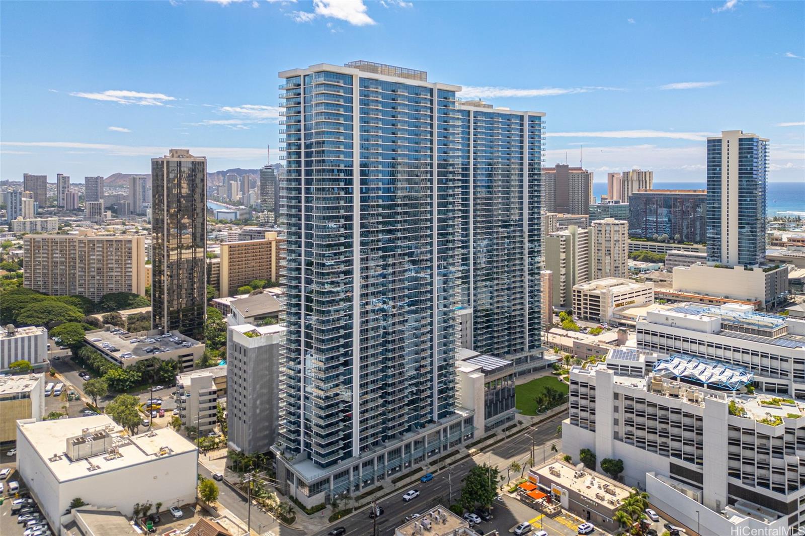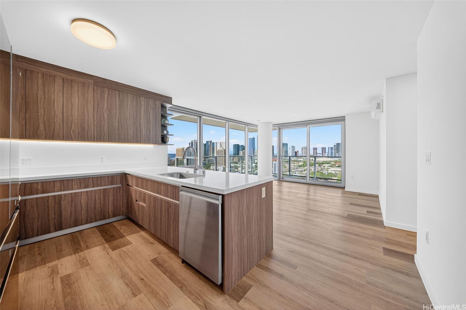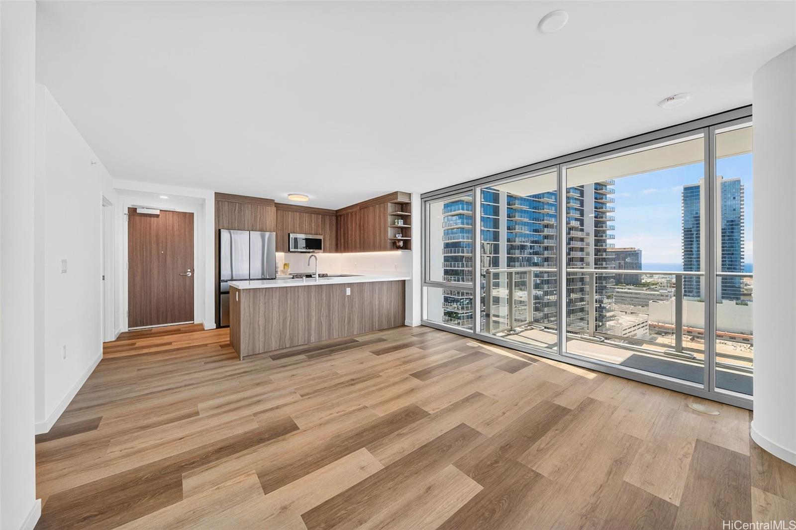 Spacious 2-bedroom, 2-bathroom, 2-parking corner unit, never lived in, located in a vibrant new community at the newly completed The Park on Keeaumoku – Liona Tower, with beautiful ocean, city, and mountain views, just minutes from Ala Moana’s shopping, dining, and entertainment. This bright home features floor-to-ceiling windows, a private wraparound lanai, a modern kitchen with quartz countertops, luxury vinyl plank flooring in the living areas and kitchen, and split A/C in every room for year-round comfort.