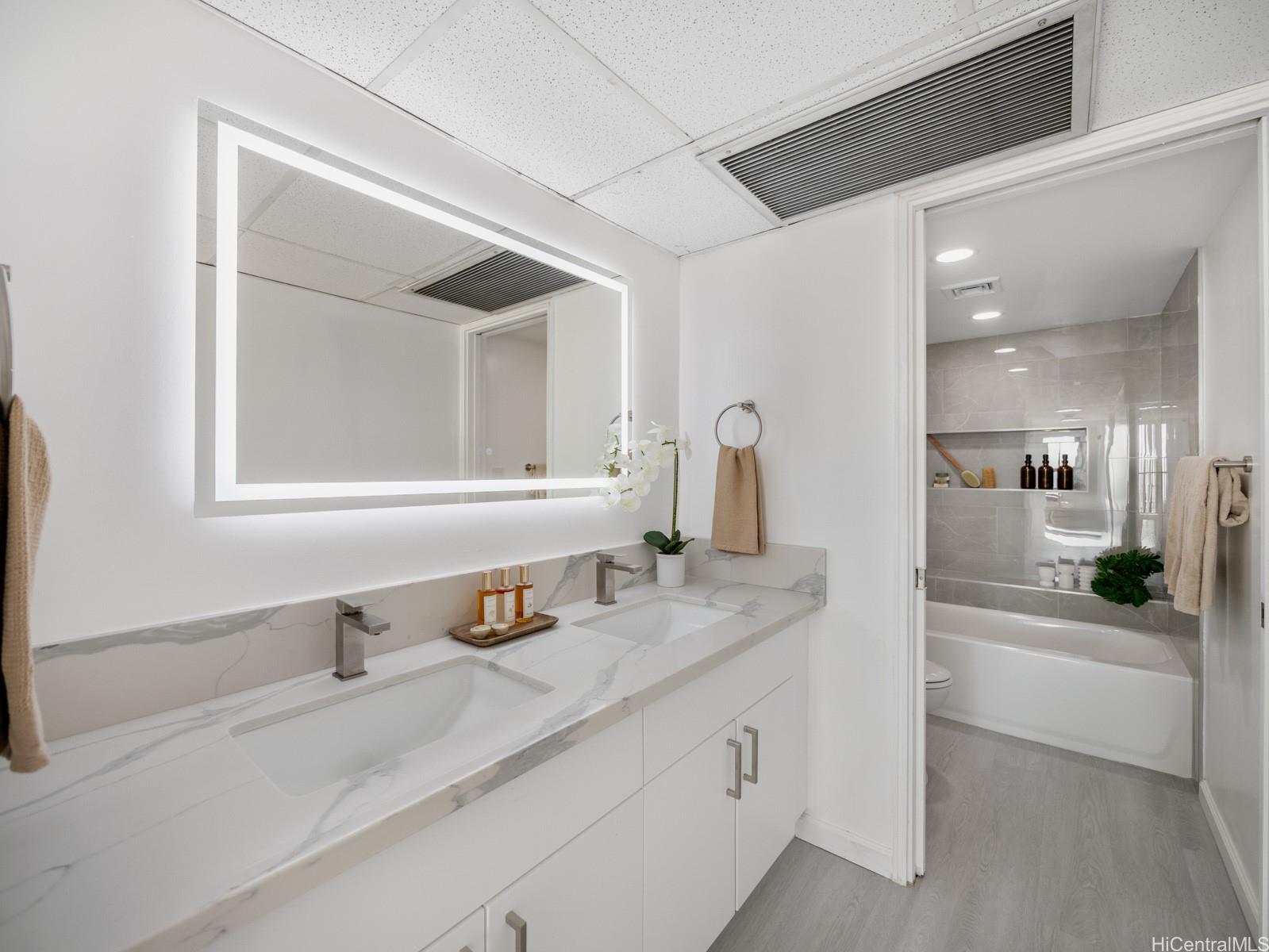 Welcome to this fully remodeled Yacht Harbor Towers unit, where luxury meets breathtaking beauty. This modern 2-bedroom, 2-bathroom unit offers sweeping, panoramic views of the ocean, colorful sunsets, and the yacht harbor. Situated just steps away from the Ala Moana Shopping Center, beach parks, and an array of dining options, this residence captures the essence of convenience and style.