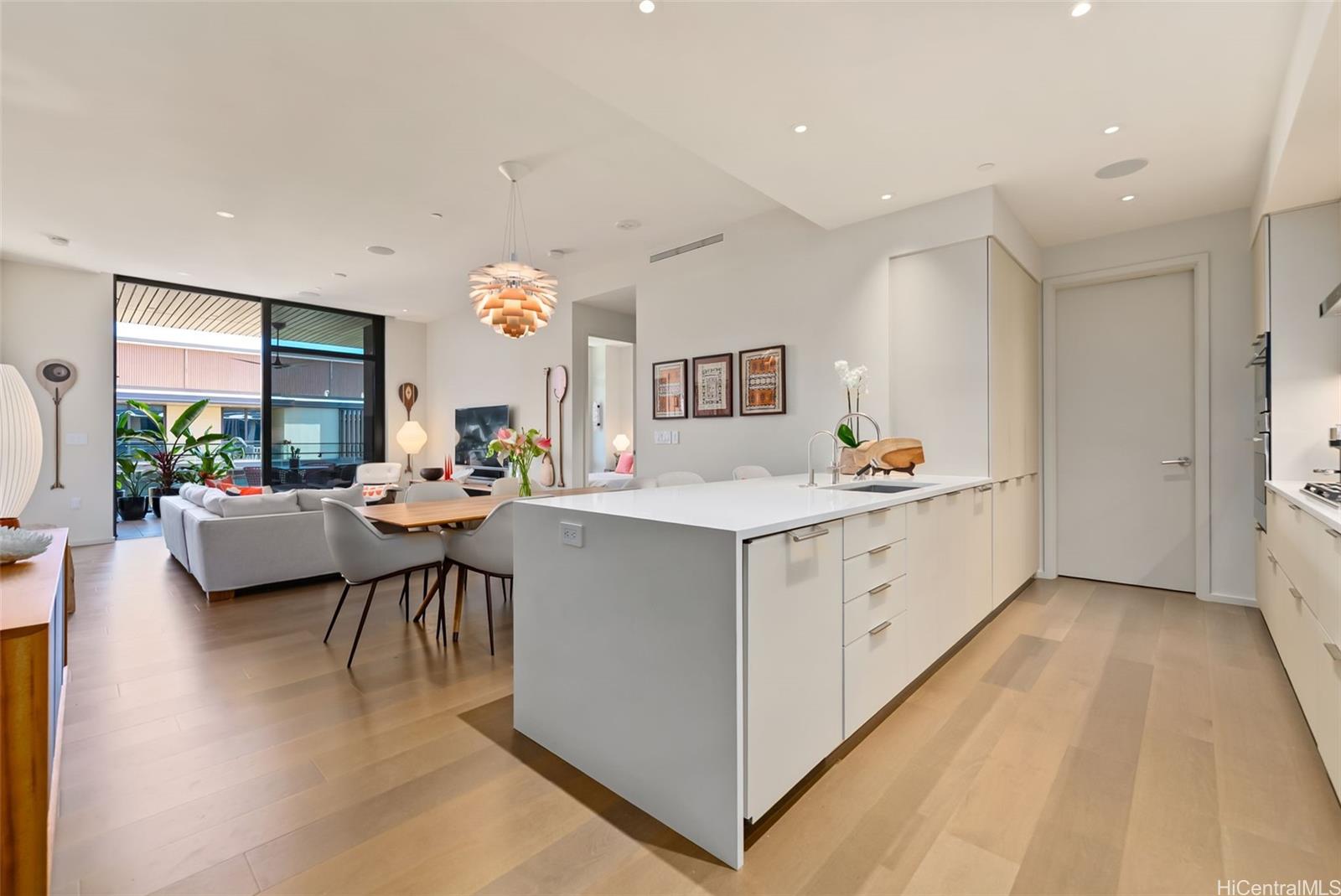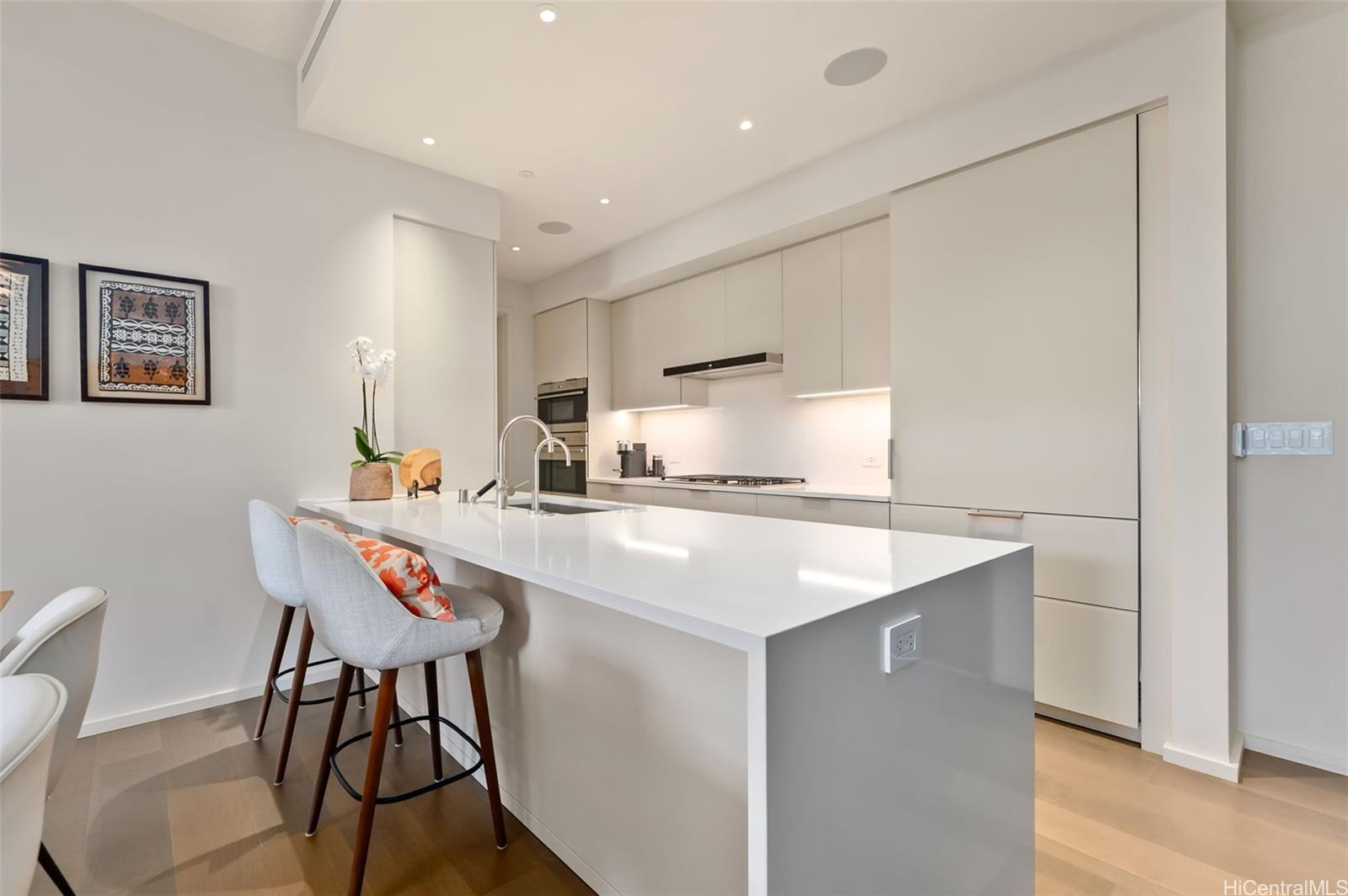 Located on the coveted 8th floor of the prestigious Park Lane Ala Moana, this refined 2-bdrm, 2-bath Courtyard Residence with a den offers an exceptional blend of island luxury and exclusivity. Tastefully furnished, the home is curated with world-class design elements, highlighted by an exclusive Swiss-made dining table by Zoom by Mobimex, Louis Poulsen’s iconic Artichoke pendent and many more, setting a sophisticated tone for both everyday living and elegant entertaining. Soaring ceilings and top-floor positioning enhance the sense of openness and tranquility, while the versatile den provides the perfect space for a home office, or media lounge. Ideally located across from Ala Moana Beach Park and steps from shopping & dining, Park Lane offers resort-style amenities including concierge services, fitness center, pool, spa, private theater, dining room, lush landscaped grounds, and more. A turnkey opportunity to own a meticulously designed and furnished home in one of Honolulu’s most sought-after addresses.