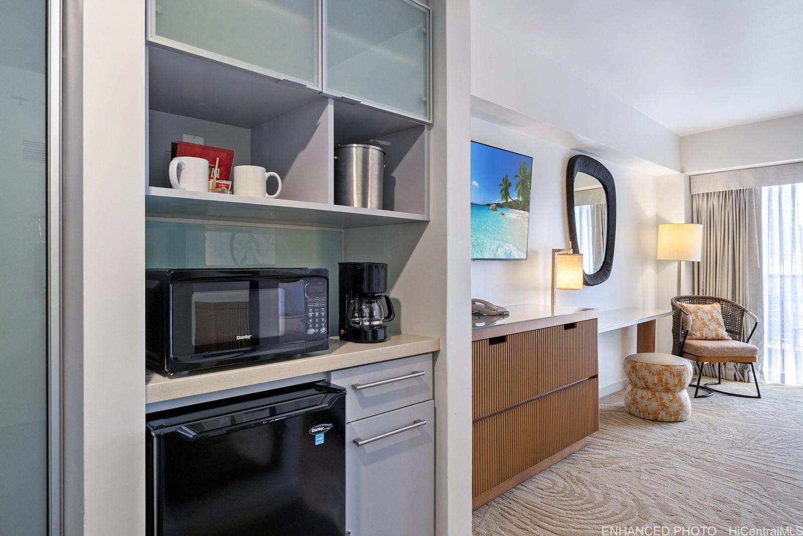 アラモアナホテルコンドミニアム内にある、最近改装された明るく風通しの良い、家具付きのスタジオです。ワイキキタワーのダイヤモンドヘッド側に位置し、プライベートバルコニーからは部分的な海/ヨットハーバーの景色を楽しめます。現在、マントラが運営するホテルレンタルプログラムに参加しています。アメニティには、広々としたサンデッキ付きの屋外プール、ジムとサウナ付きのフィットネスセンター、フルサービスのスパ&サロン、カジュアルなカフェからパノラマビューを望む最上階のステーキレストランまで、様々なホテル内飲食オプション、バレーサービス、様々な小売店などがあります。管理費には、電気代、セントラルエアコン、水道代、共益費が含まれます。建物には消火スプリンクラーシステムが装備されています。2階のスカイブリッジは、ホノルルの高級ショッピングモールであるアラモアナセンターに直結しています。アラモアナリージョナルパーク、アラモアナビーチ、ハワイコンベンションセンターもすぐ近くです。ホノルルのダウンタウンの金融街とワイキキ ビーチの間に位置し、休暇旅行者にもビジネス旅行者にも理想的なロケーションです。
