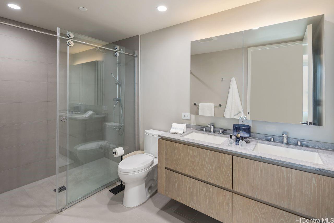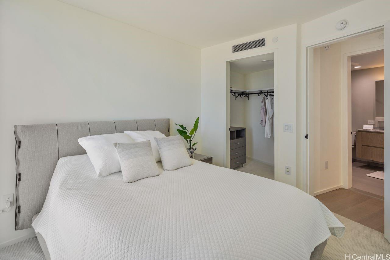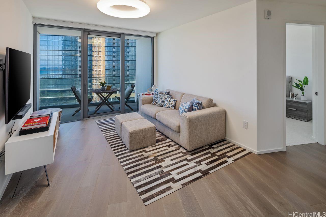 新築のモダンな2ベッドルームが驚きの価格で登場!ワードビレッジ、アラモアナビーチ、ホールフーズ、アラモアナモール、レストランが集まる最高のロケーション!この素敵なユニットは、海と山の景色を楽しめるプライベートラナイが特徴で、下のワードビレッジパークへも簡単にアクセスできます。さらに、デザイナーズ電動ブラインド、アップグレードされた照明、美しく整えられたミーレ製家電、ボーズサウンドシステム付きのサムスン製HDTV、広々としたバスルーム、セントラルエアコン、そして非常にゆったりとしたクローゼットスペースなど、設備も充実しています。メインバスルームには、独立したバスタブと独立したシャワーブース、トイレエリアにはプライベートガラスドアが備わっています。このユニットの魅力は、天候に左右されない駐車場に2台分の広々とした並列駐車スペースがあることです!充実したアメニティには、プライベートで豪華なパーティールーム、サウナとトリートメントルーム、プールサイドカバナ、2つのジャグジー、バーベキューパビリオン、そしてワールドクラスのフィットネスジムが含まれます。
