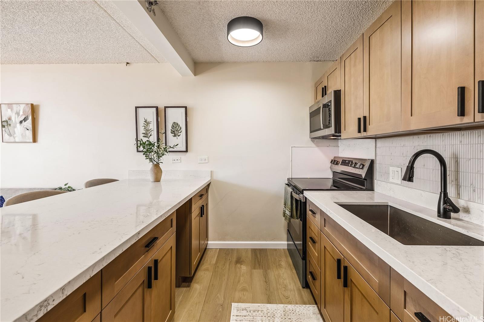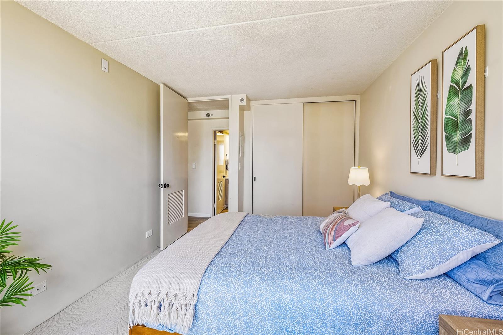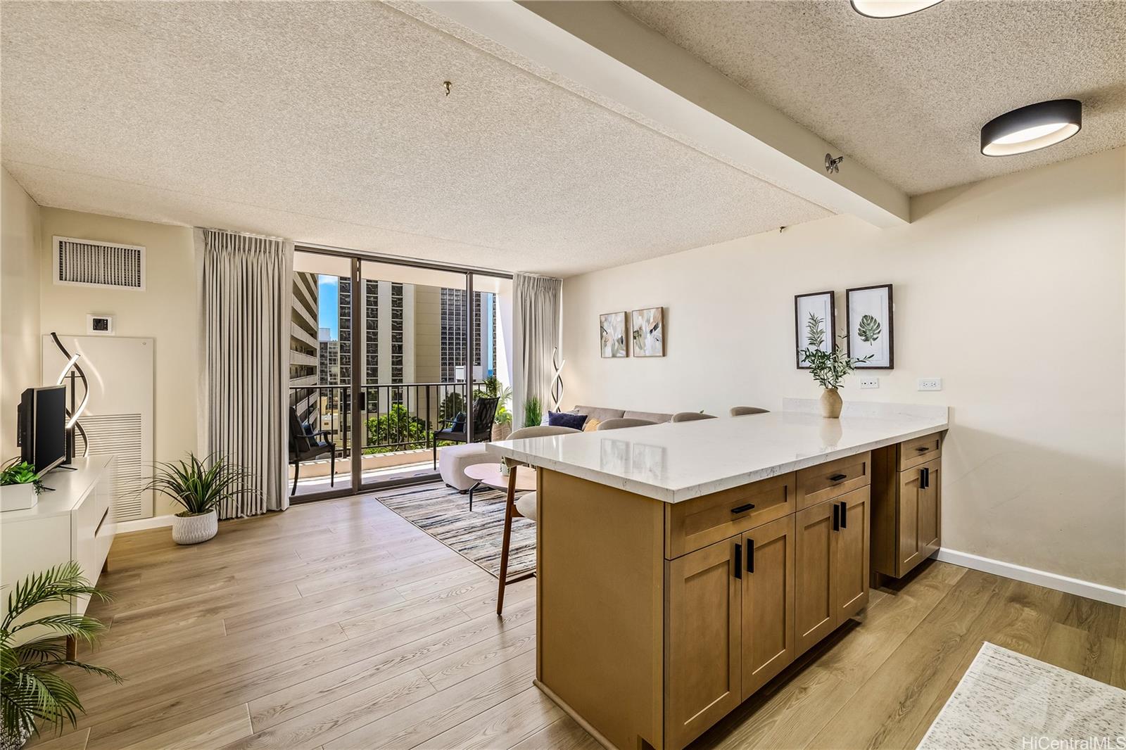 Legal Short-Term Rental. Beautifully renovated and fully furnished 1-bedroom, 1-bath unit in the desirable Waikiki Sunset condominium. Modern finishes, open layout, central A/C and private lanai with peek-a-boo ocean views, city and mountain views. An unassigned parking stall is also included for ultimate convenience. Building amenities include heated salt water swimming pool, sauna, fitness center, BBQ area and 24-hour security. Located in the heart of Waikiki, you’re a stone's throw away from world-famous beaches, world-class dining, and endless shopping. Whether you want to surf at sunrise, dine under the stars, or generate income while you’re away, this Waikiki Sunset condo is the perfect blend of lifestyle and opportunity. Perfect as an investment or vacation home. See video walkthrough.