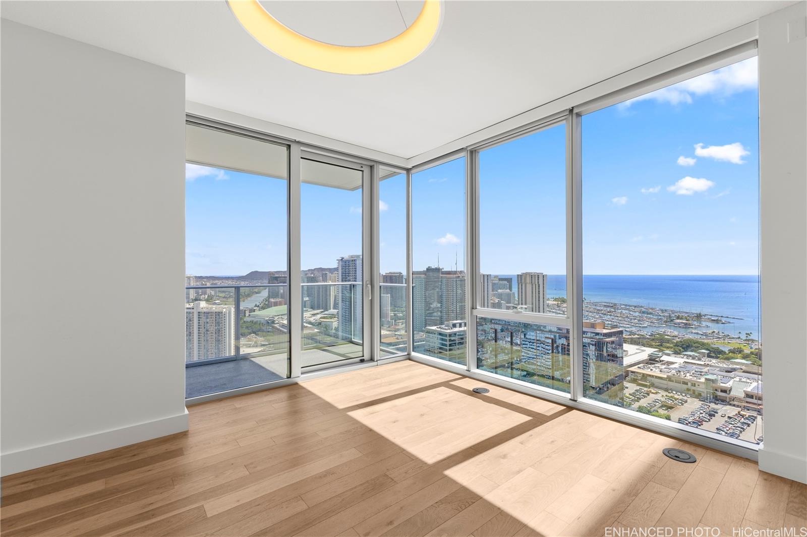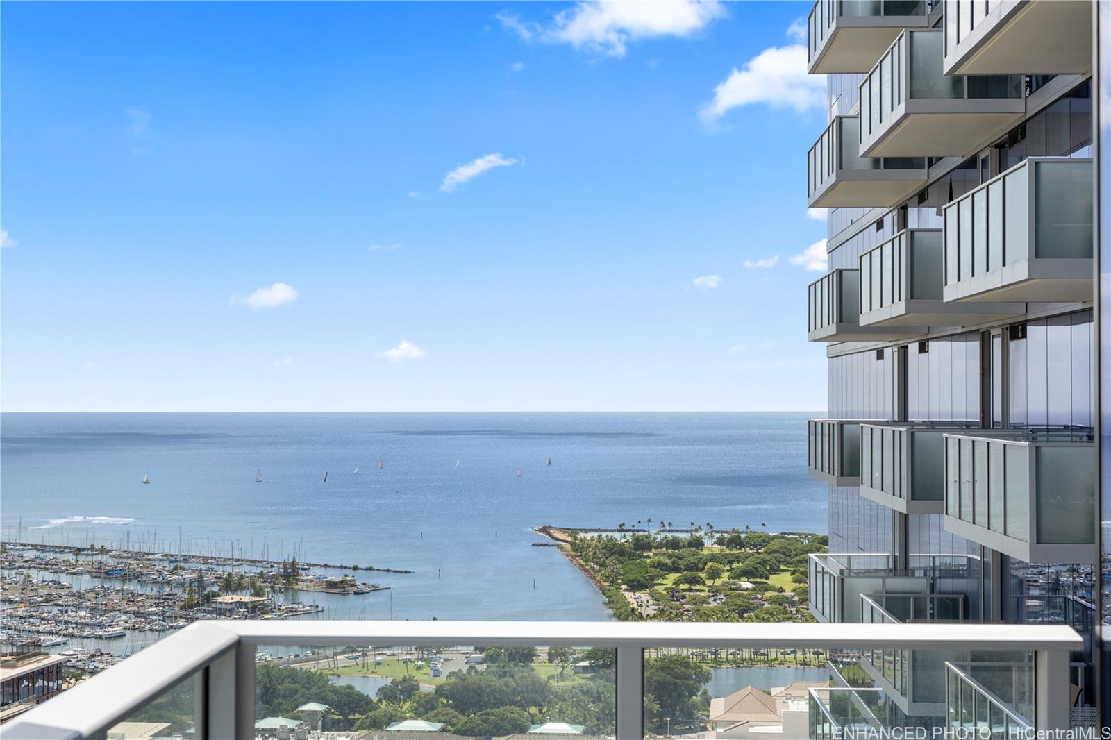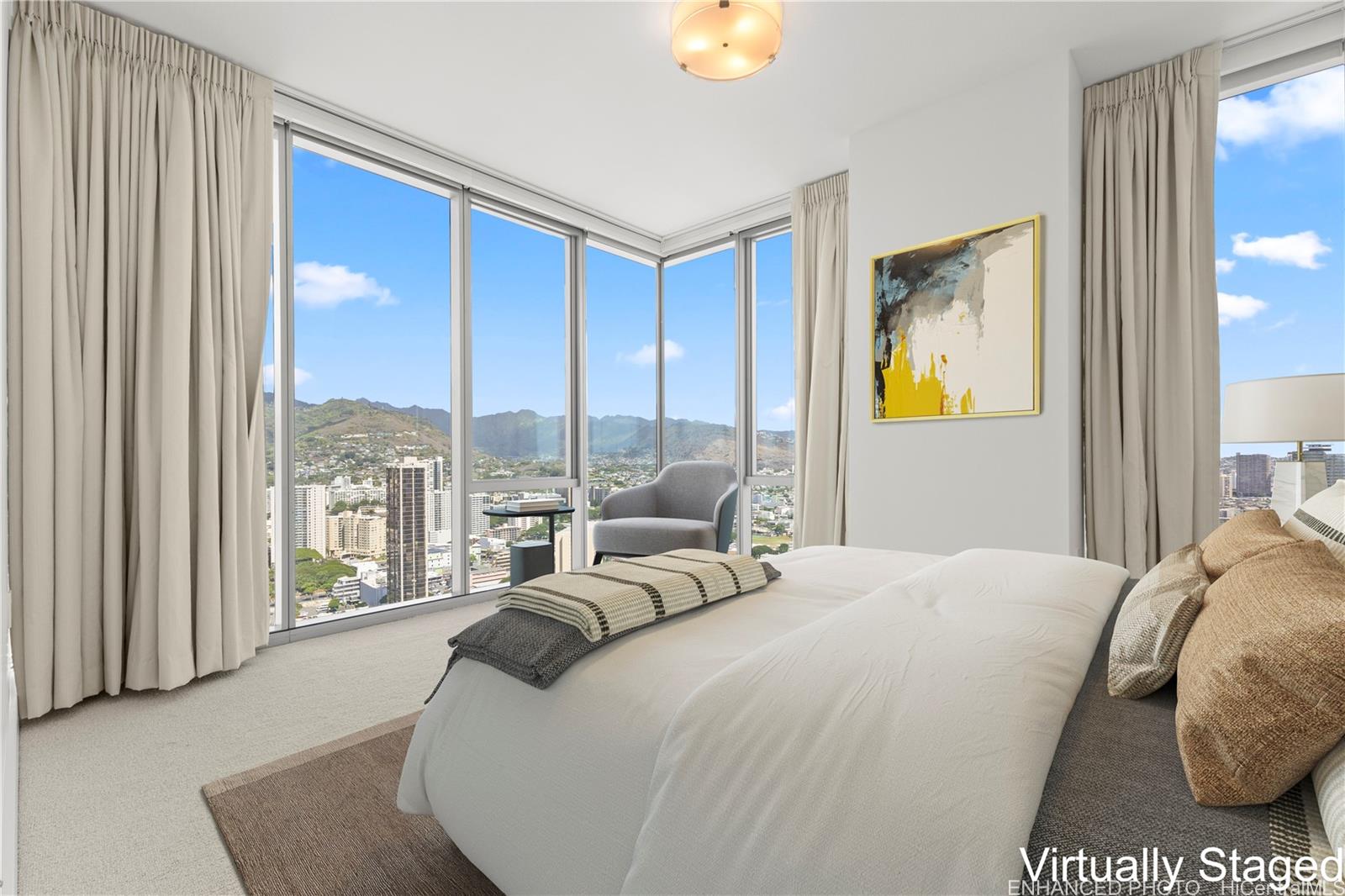 ホノルルの中心部で、都会のモダンライフを満喫できるAzure Ala Moanaのプレミアム2ベッドルーム、2バスルームのコーナーユニットをご体験ください。天井高9フィートを誇る高層階に位置するこの住宅は、快適さとスタイリッシュさを兼ね備えています。キッチンには、Sub-Zero製冷蔵庫、Bosch製電子レンジ、Wolf製コンロとオーブン、Bosch製食器洗い機など、最高級の家電製品が揃っています。リビングルームにはローラーシェード、全寝室にはローラーシェードと遮光カーテンが完備されています。専用駐車スペースには便利な収納ロッカーがあり、さらに2つの並列型屋根付き駐車スペースもご用意しています。アラモアナセンター、アラモアナビーチパーク、ターゲット、サムズクラブ、そして様々なレストランまでわずか数分という好立地をお楽しみください。Azure Ala Moanaは、プールとジャグジー、バーベキューパビリオン、映画館、フィットネスセンター、自転車とサーフボードの保管場所、ゲストスイート、アメニティエリアでの高速Wi-Fiなど、リゾートスタイルのアメニティを提供しています。建物にはセキュリティゲートと24時間対応のフロントデスクサービスも備わっており、利便性と安心感を高めています。Azure Ala Moanaで、利便性、快適さ、そしてラグジュアリーの完璧なバランスをご体験ください。