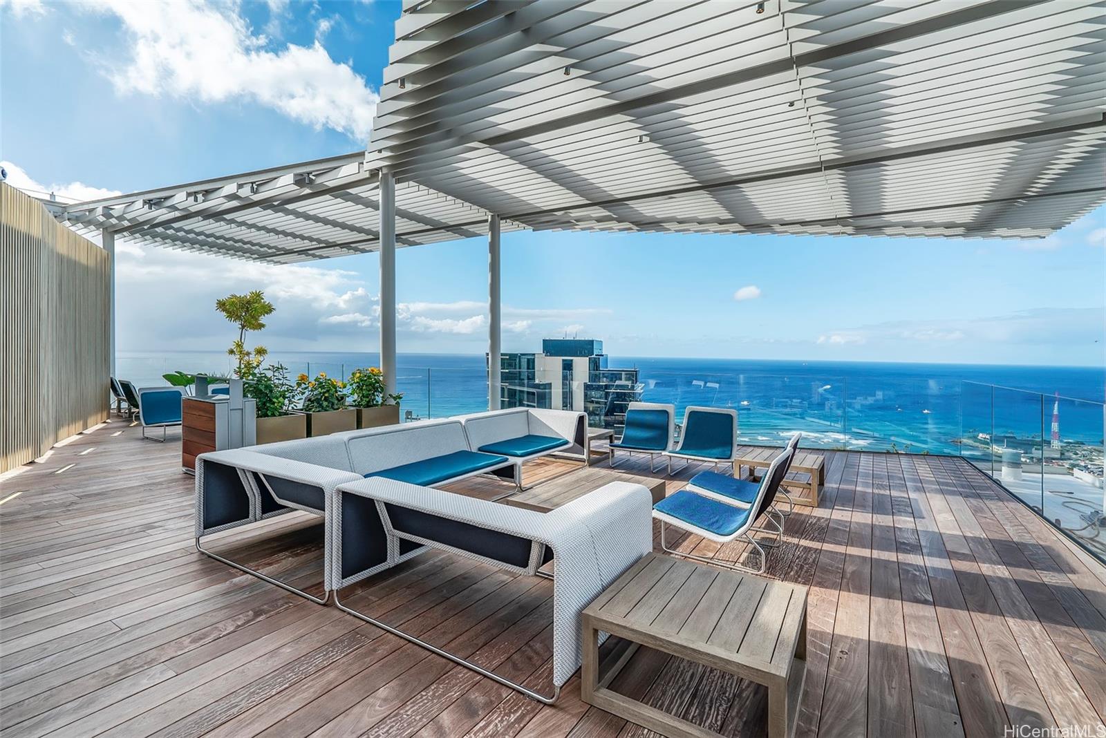 A prestigious and highly convenient high-rise condominium located in the luxurious Ward Village. This unit features2 bedrooms, 2 bathrooms, and 2 separately assigned parking stalls with deeded storage conveniently located in front of the parking area. Enjoy direct access to Whole Foods Market from Ae'o, and proximity to Ward theater and Ala Moana Center. It also offers luxurious amenities including a ocean-view swimming pool, a lap pool, a state-of-the-art fitness center, a rooftop sky terrace, a BBQ area with dining cabanas, a media room, a dog park, guest suites, and more. The unit is in excellent condition with brand-new paint and is a breezy corner unit. See your future home - this a must see!!