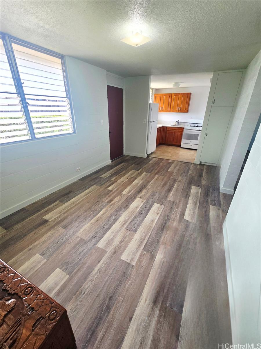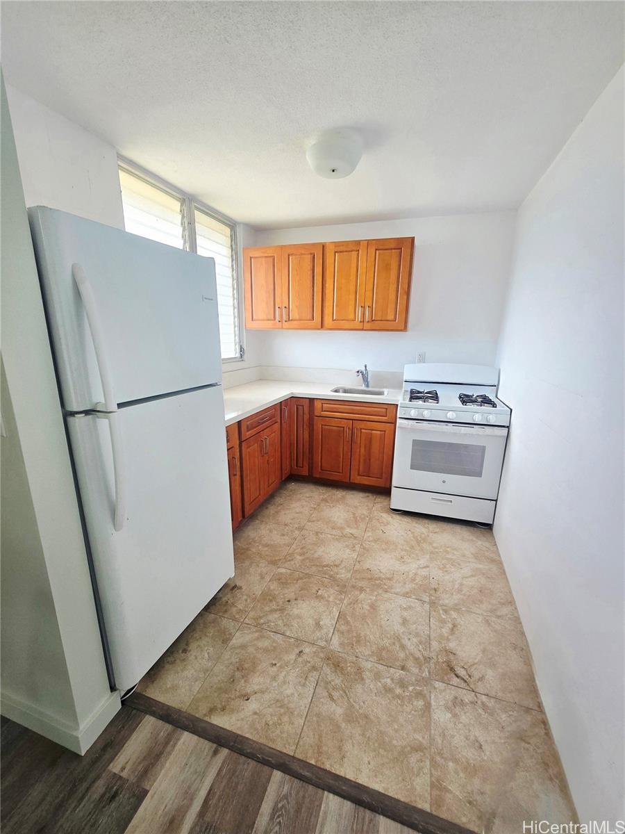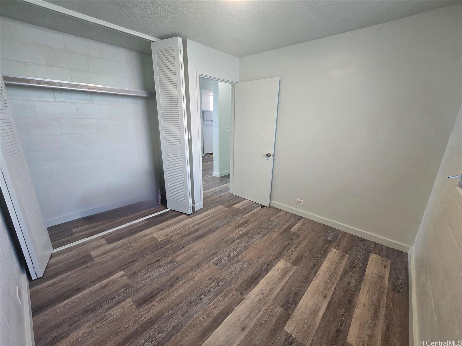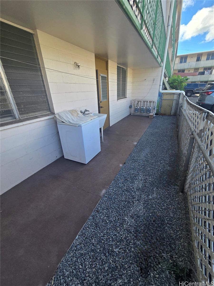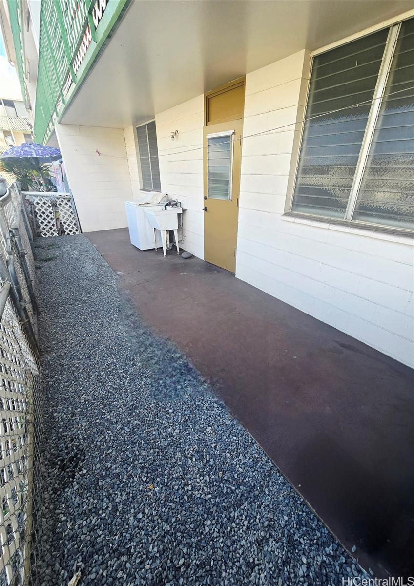 This 2-bedroom, 1-bath condo offers 702 sq. ft. of interior living space plus a 72 sq. ft. open lanai offering more living space than many units in the area. Recently updated with new flooring and fresh interior paint throughout, providing a clean and move-in-ready feel. Low maintenance fees include gas, water, and sewer, keeping monthly costs affordable. Located in a gated community and conveniently close to schools, restaurants, and bus stops, making daily living easy and accessible. Option to install a full-size washer and dryer on the patio for added convenience. One assigned parking stall included. Excellent rental potential or starter home opportunity.