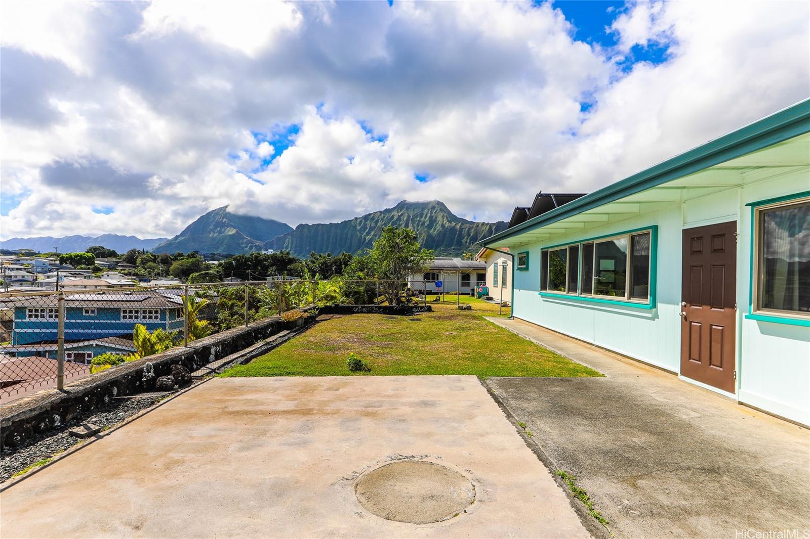 Excellent Location!!! Upgraded Single Level 3 Bdrm + Den (possible 4th Bdrm) 2 Bath Single Family Home. 1650+ sf. of living area. Brand New Windows and Flooring Throughout! Remodeled Kitchen/Baths! Multiple Sky lights providing extra interior light! Separate Laundry Room! Backyard Retaining Wall creates useable level yard and Views of Kaneohe Town! Ample Storage! Walking distance to Kapunahala Elementary! Easy access to Freeways! A Must See! First Open 10/26/2025 2-5pm. Appointment Only!