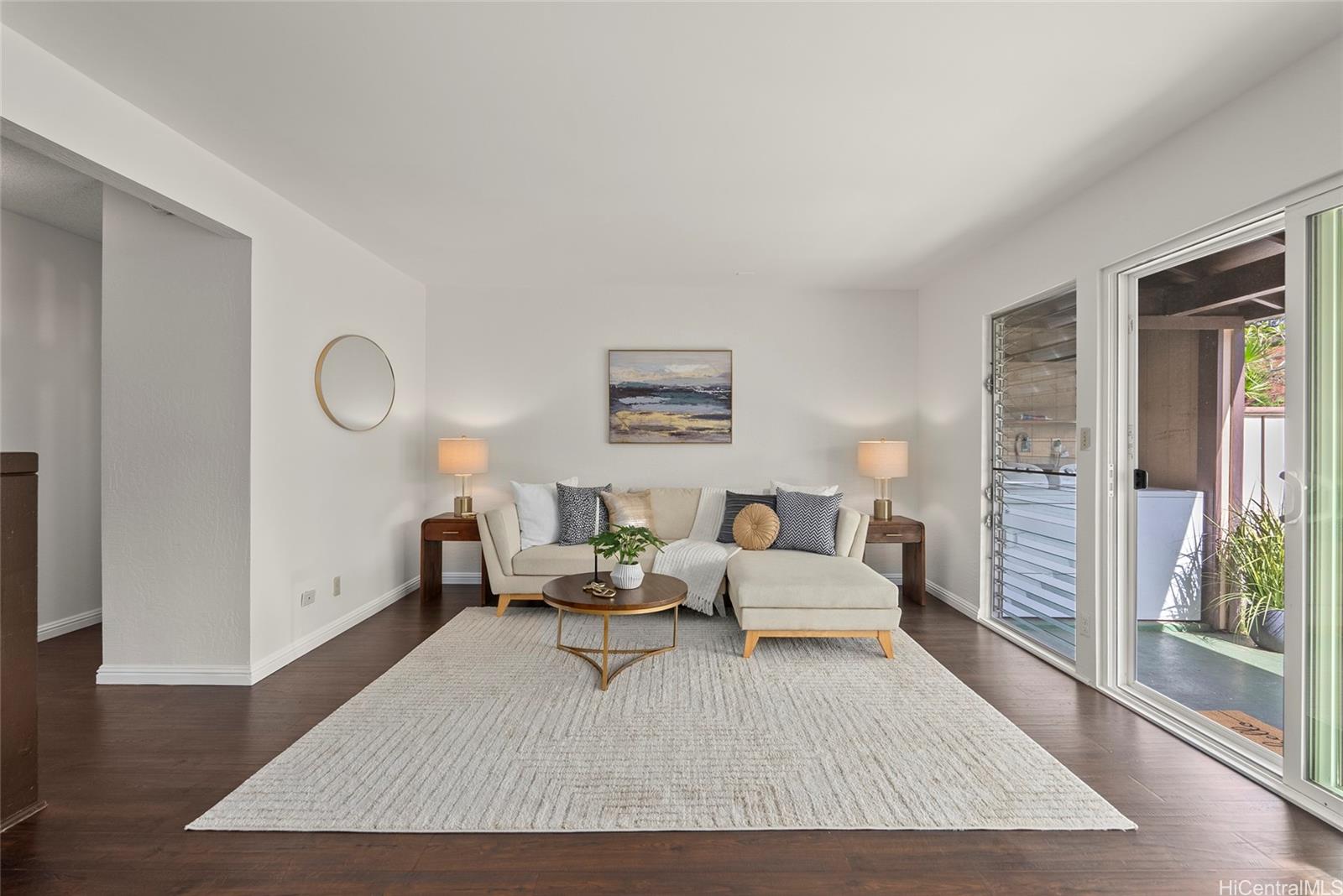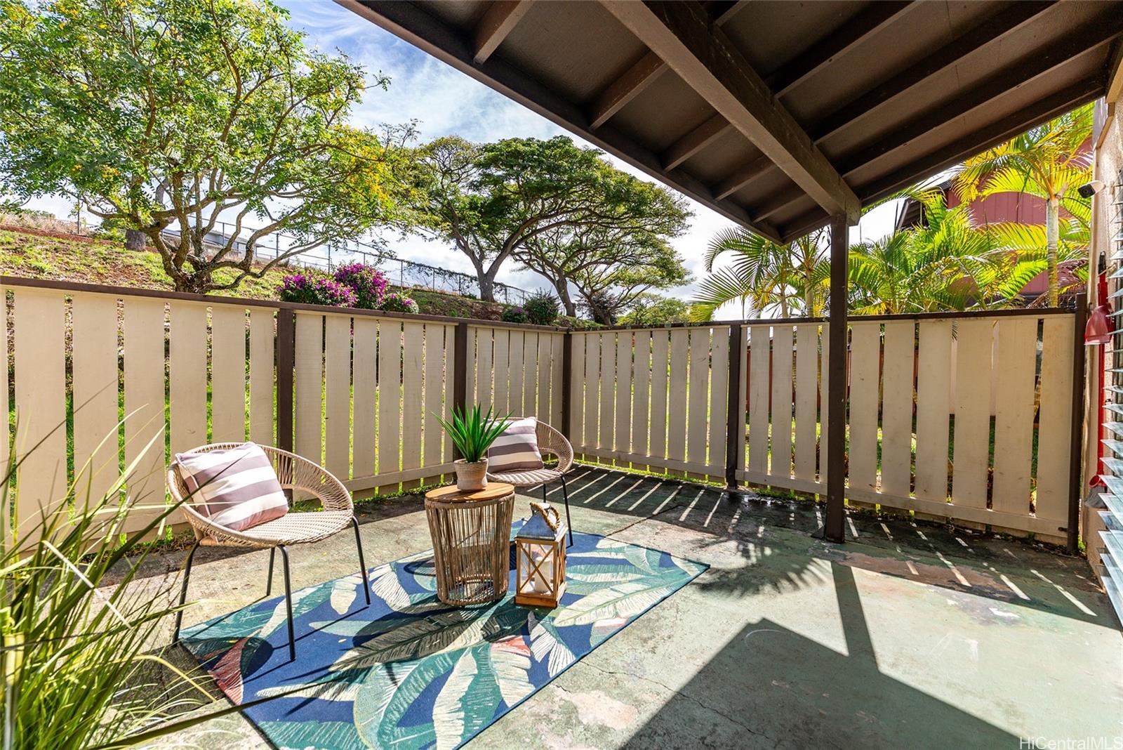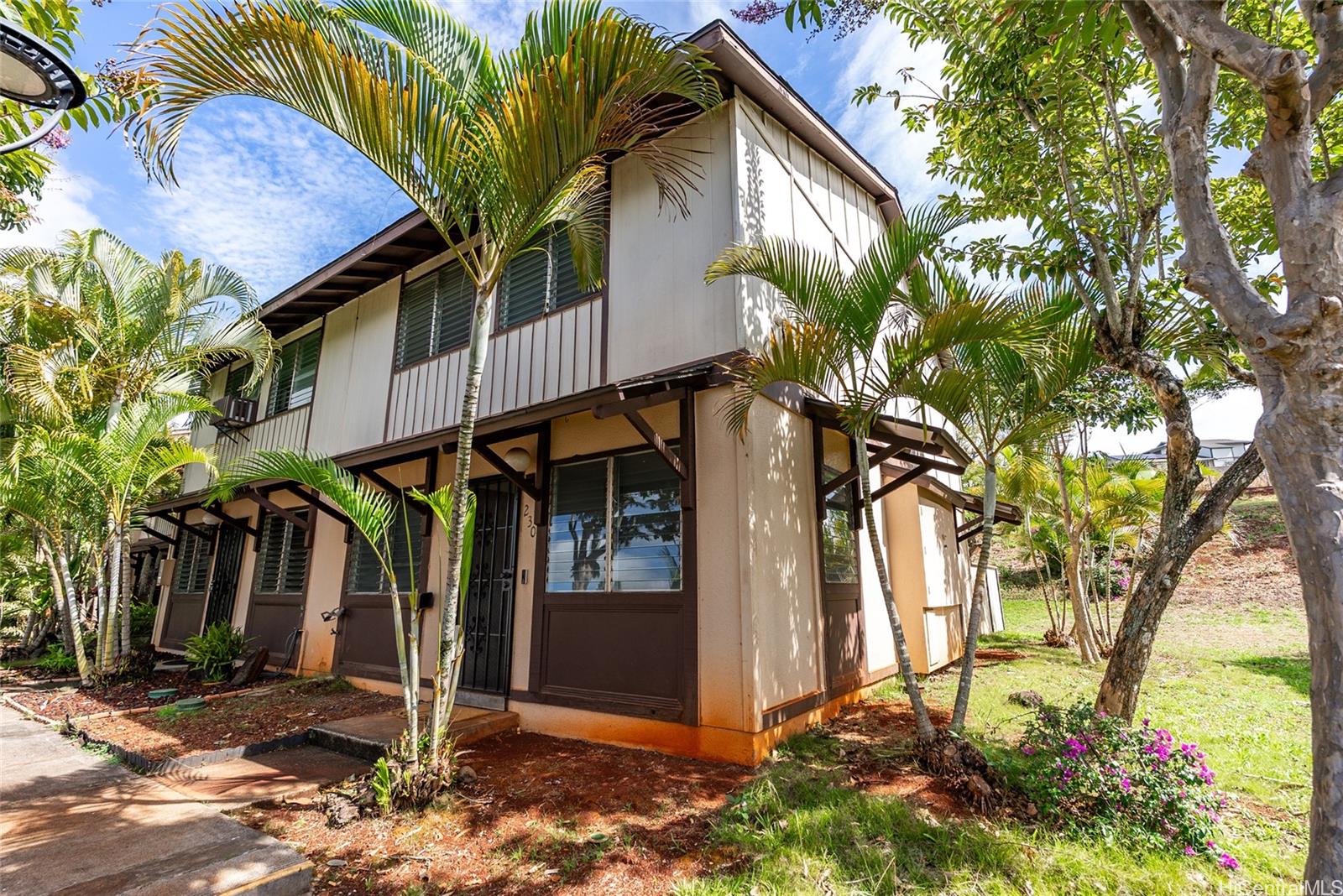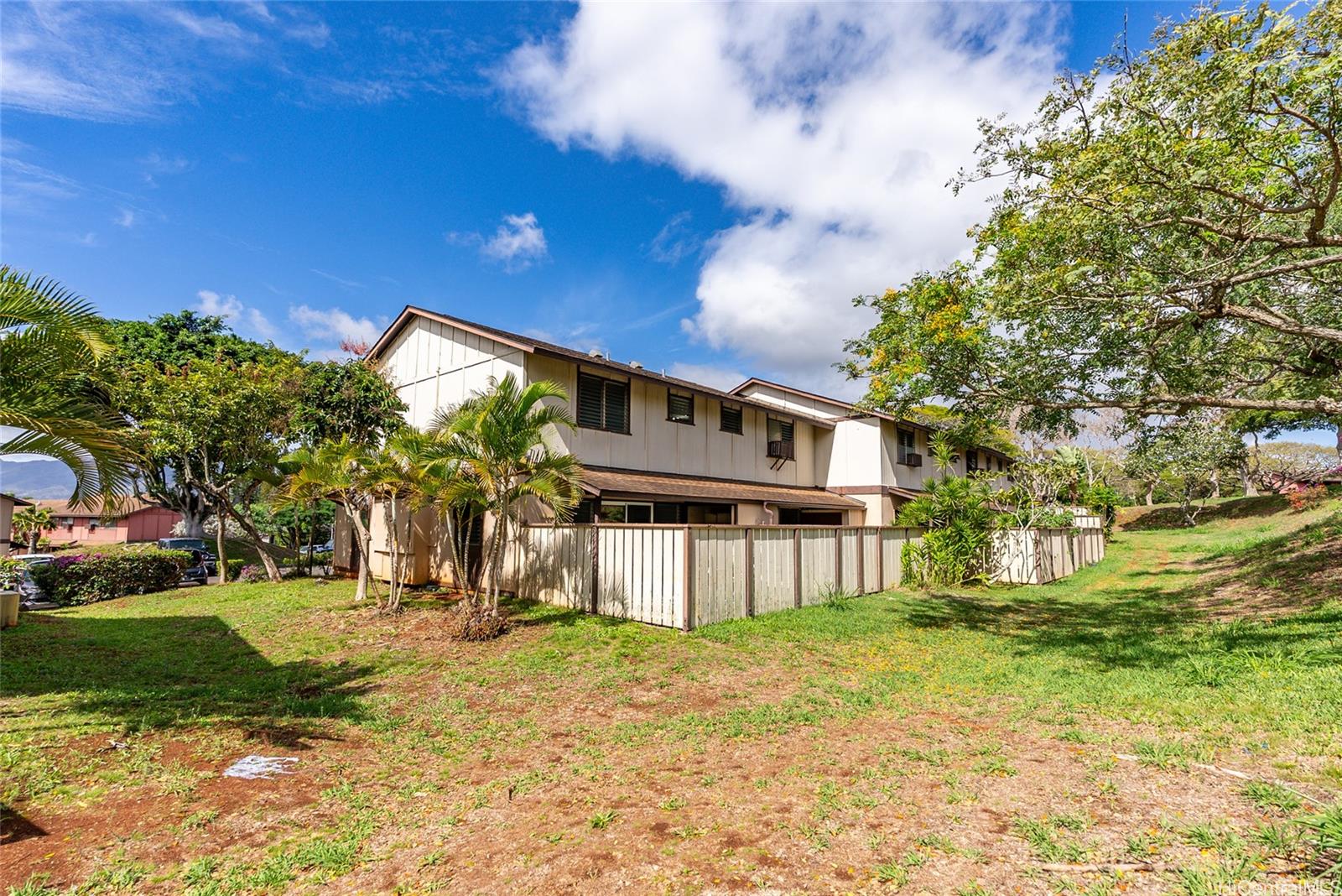 Welcome home to this desirable 3-bedroom, 2.5-bath townhome in the conveniently located Nob Hill community.. This desirable end-unit townhome is perfectly positioned on the outer rim of the community, offering exceptional privacy with no back neighbors, side windows for added light and cross breezes. The fenced lanai creates a peaceful outdoor retreat, ideal for relaxing or entertaining. Enjoy the convenience of two assigned parking stalls located right in front of the unit. The spacious layout lives more like a single-family home than a townhouse, offering an open and comfortable flow for everyday living. The primary suite features its own ensuite bath, while the two additional bedrooms provide flexibility for family, guests, or a home office. Centrally located near the Town Center of Mililani, with shopping, restaurants, schools, parks, and the community pool just minutes away. This home offers an ideal setting to enjoy the best of Mililani living.