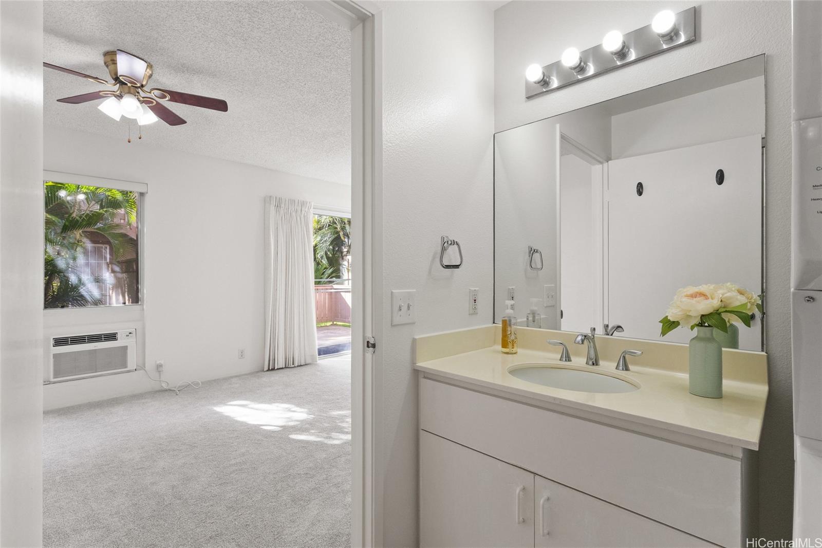 Immaculate and move-in ready, this ground floor studio offers a perfect blend of modern comfort and style. Recently updated with all brand-new appliances—including a stove, refrigerator, washer & dryer, and hood vent—along with a new air conditioning unit, laminate flooring and carpeting throughout. Offered for the first time by the original owner, this home reflects true pride of ownership and has been exceptionally well cared for. Enjoy the convenience of one covered parking stall, with additional guest parking and nearby street parking available. The well-maintained Palm Villas 2 features a secured pool, BBQ area, and recreation space, providing an inviting setting for both relaxation and entertaining. A rare opportunity to own a turnkey home in a desirable, amenity-rich complex!
