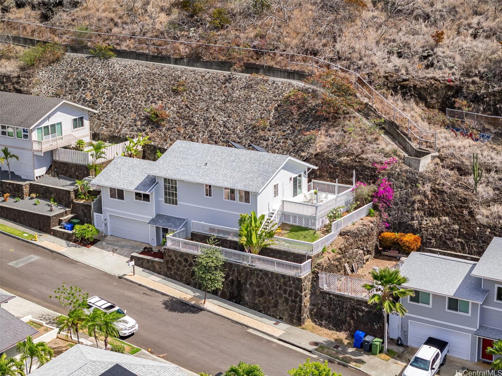 3ベッドルーム、2バスルームを備えた、手入れの行き届いた2階建て住宅です。ココクレーターとココヘッドの両方を含む、絵のように美しい山々と、ちらりと見える海の景色を望めます。この住宅には最近、いくつかの改修が施されており、2024年に新しい屋根、新しいデッキ、新しいサイディングがあります。内装は最近塗装され、外装は2021年に塗装されました。また、最近塗装されたランドリールーム付きの2台用ガレージと太陽熱温水システムもあります。裏庭にはバナナなどの果樹が植えられています。このロケーションは、スケートパーク、ピックルボール、テニスコート、バスケットボールコート、ローラースケートリンク、遊び場、ジャングルジム、広場を備えたカミロイキ近隣コミュニティパークへのアクセスに便利です。ハワイカイコミュニティには、美しいビーチ、多様なショッピングエリア、風光明媚なハイキングコース、地元の学校での学士課程など、魅力的なものが数多くあります。ミロイキ通りはもはや私道ではありません。この物件は「現状有姿」で販売されており、内覧も容易です。詳しくは、調査報告書および追加資料の補足資料をご覧ください。最初のオープンハウスは、今週日曜日(10月26日)午後2時から午後5時まで開催されます。