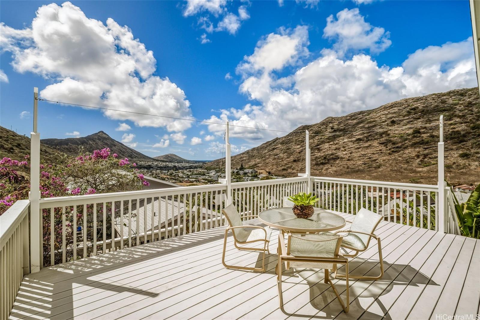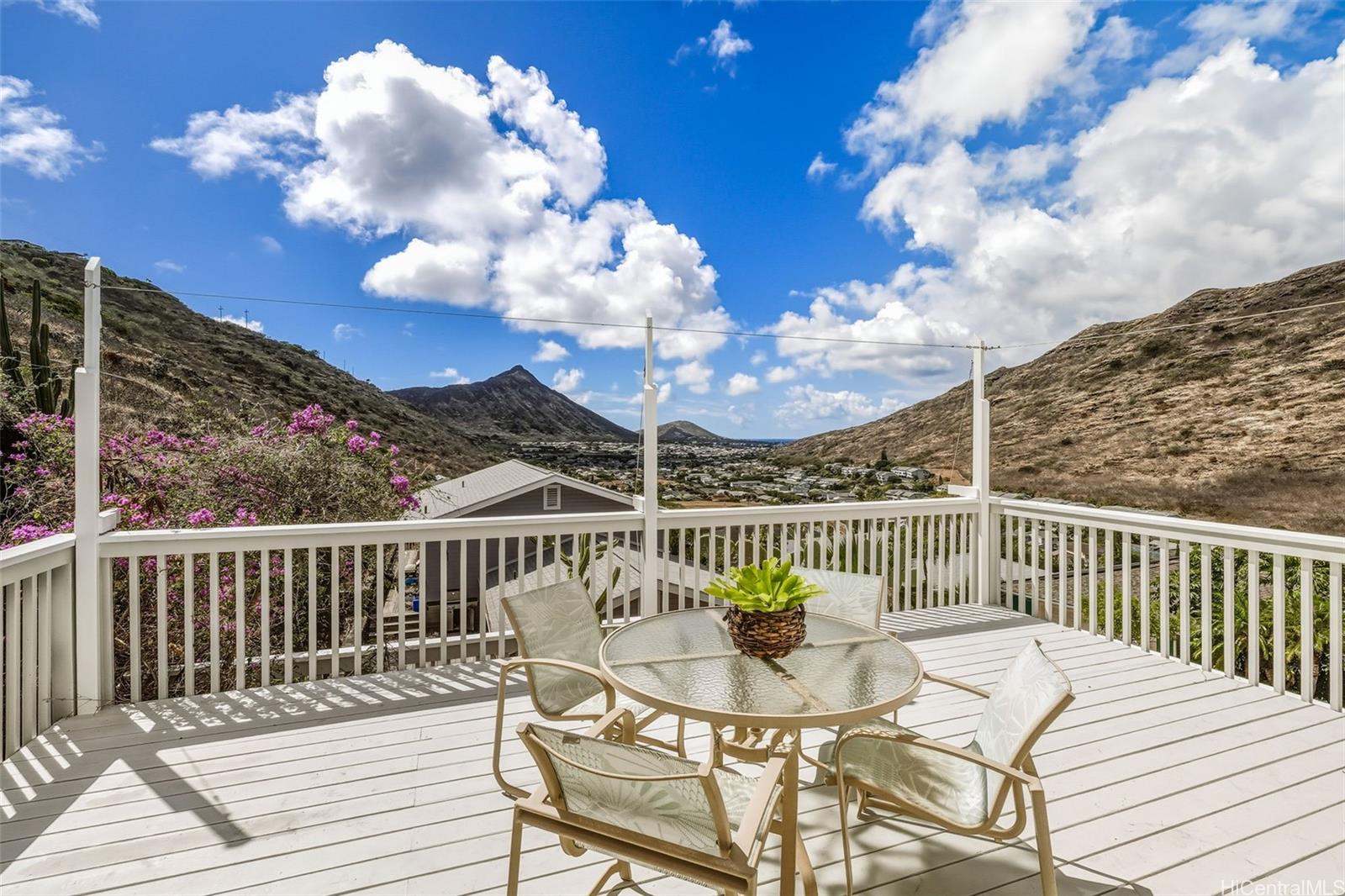 This well-maintained two story home with three-bedrooms, two-baths offers picturesque mountain and peek-a-boo ocean views, including views of both Koko Crater and Koko Head. The home features several recent upgrades, a new roof in 2024, a new deck, and some new siding. The interior has just been painted, and the exterior was painted in 2021. Also includes a two-car garage with a laundry room, both recently painted, and a solar water heating system. The backyard features banana and other fruit trees. The location offers easy access to Kamilo'iki Neighborhood & Community Parks, which provide a skate park, pickleball, tennis and basketball courts, a roller rink, playgrounds, jungle gyms, and open fields. The Hawaii Kai community offers an array of appealing features, including beautiful beaches, diverse shopping areas, scenic hiking trails, and baccalaureate programs at local schools. Miloiki Street is no longer a private road. The property is being sold "As-Is" and is easy to show. For more information, please see the supplements for the survey and additional documents. First open house this Sunday, October 26, from 2:00 PM to 5:00 PM.