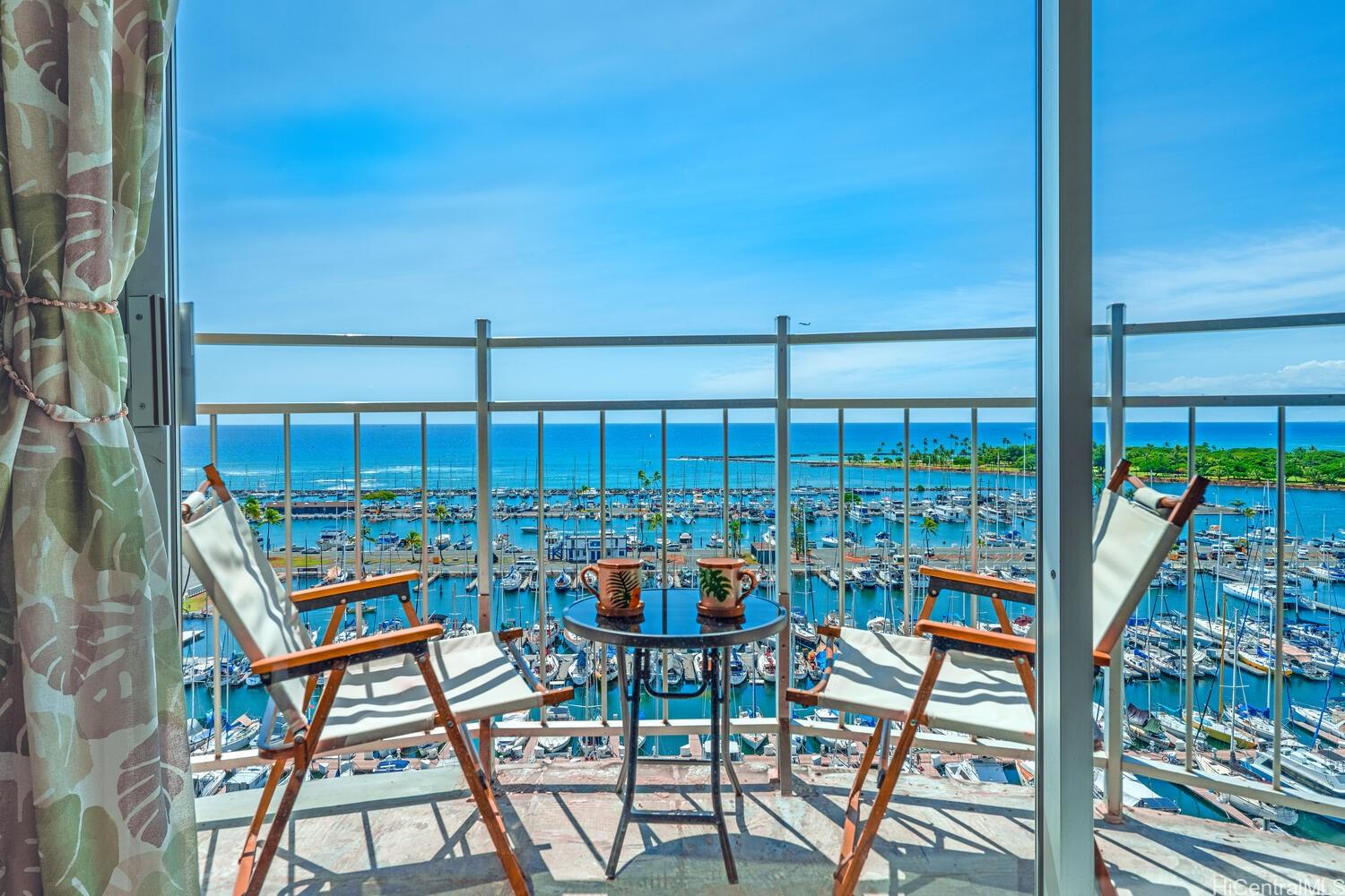 This successful, highly rated vacation rental offers an ideal opportunity for investors or for your own private island retreat! This beautifully remodeled oceanfront condo at the Ilikai Marina offers one of the most stunning panoramic Ocean and Yacht Harbor views in Waikiki. From your lanai, watch sailboats in the harbor and spectacular sunsets. Perched high on the 13th floor, this spacious 1-bedroom, 1-bath residence features nearly 180 degrees of ocean and yacht harbor views, thoughtful island-style décor with antiques and artwork. The Full kitchen is equipped with premium appliances and everything needed for guests or extended stays. The bedroom features a Westin Heavenly King Size Bed, custom furnishings, and a lagoon-facing window seat. The spacious bathroom is a custom remodel with luxury materials. Furnished and stocked with extensive beach gear — from kayaks, paddle-boards, and snorkel sets to coolers and lounge chairs — this property is truly turnkey. Located in an unbeatable location close to Waikiki Beach, the Duke Kahanamoku Lagoon, Ala Moana Beach Park, Magic Island and world-class shopping and dining, rental parking available, central A/C, 24-hour security. View Tour!
