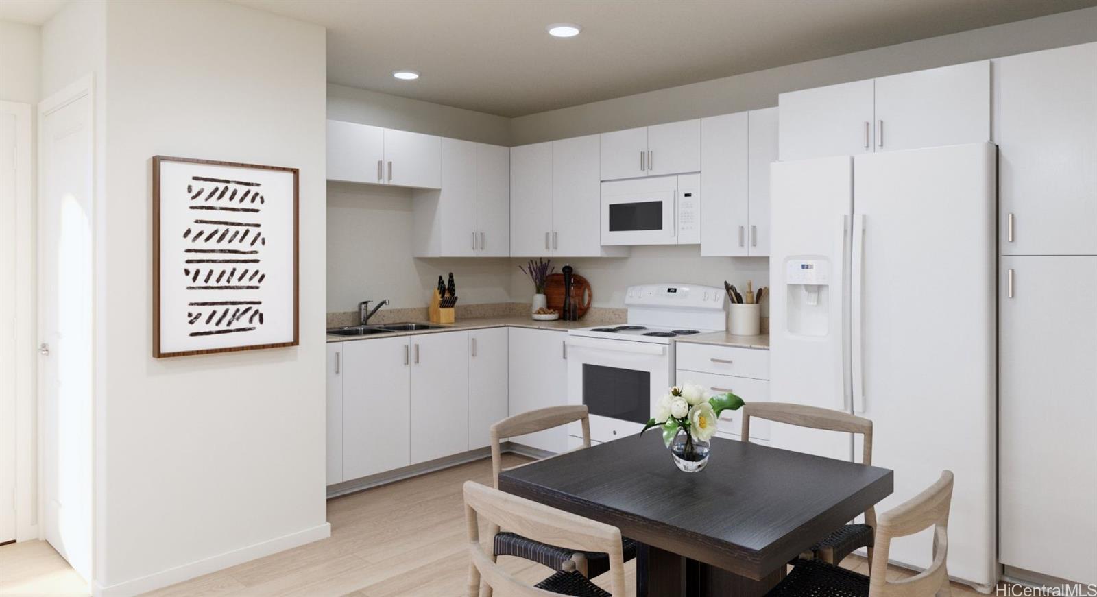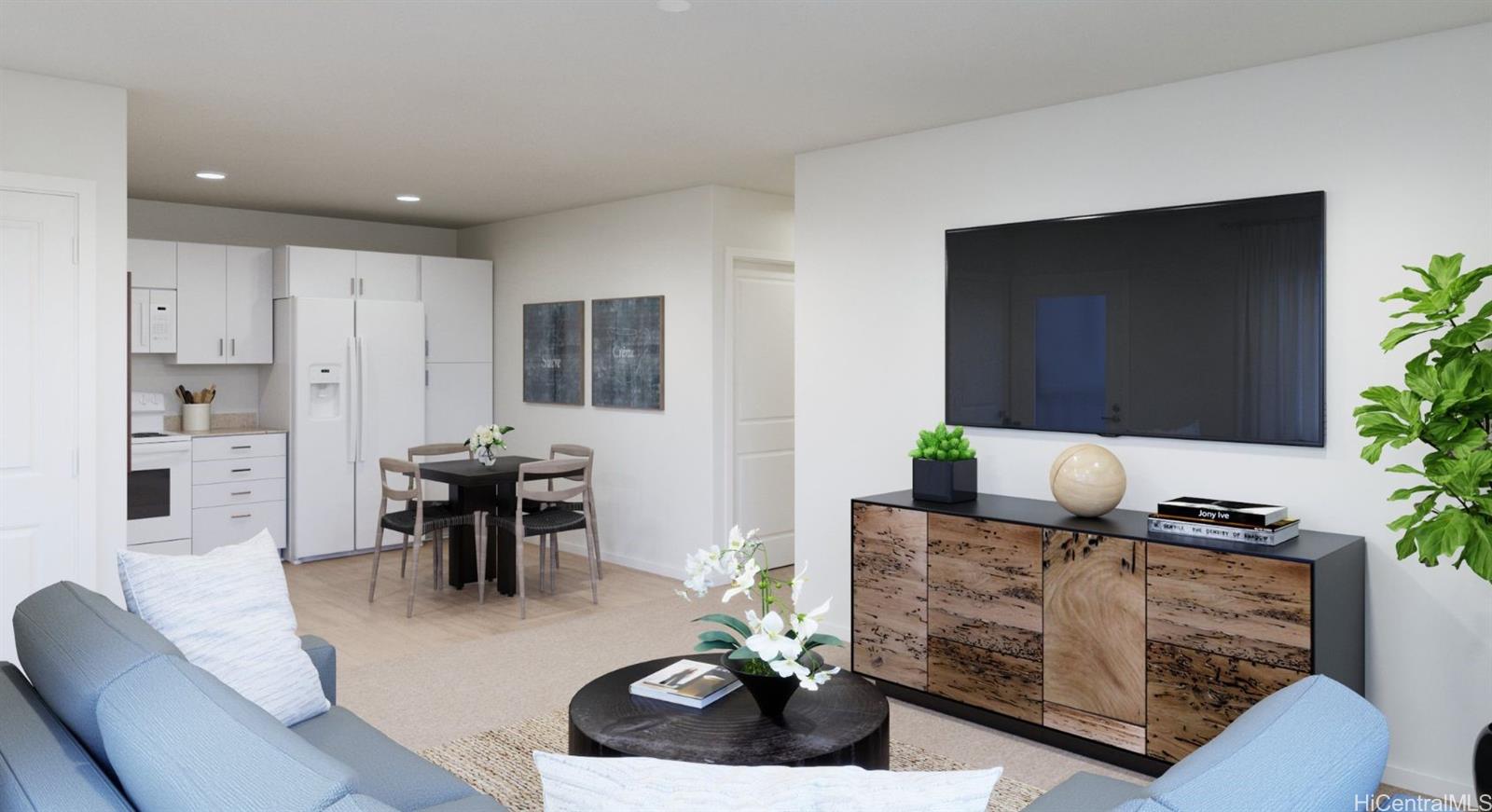 Welcome to Ke'Olu at Koa Ridge. Castle & Cooke's newest affordable townhome community thoughtfully designed for Hawaii families. Nestled in a highly desirable master planned neighborhood in Central Oahu. This 3 bedroom 2 bath townhome with 2 dedicated parking spaces offers spacious open concept living with modern comforts. Enjoy easy access to the H2 freeway and minutes away from Costco, Foodland, local restaurants, Central Oahu Regional Park, Waikele Shopping Center and more. Key features include interior sprinkler system, wall A/C units in living room and bedrooms for your comfort, HIMAC kitchen & bath countertops, soft close kitchen & bath cabinets, hurricane impact resistant windows for enhanced safety, doorbell camera for added security, solar hot water system for energy efficiency and more. Don't miss your chance to live in a beautiful family friendly community that combines quality design with affordability.