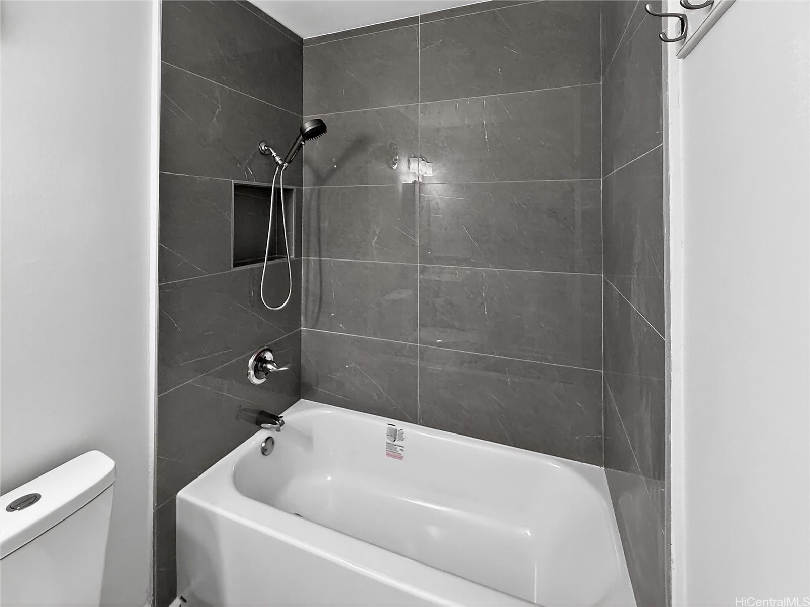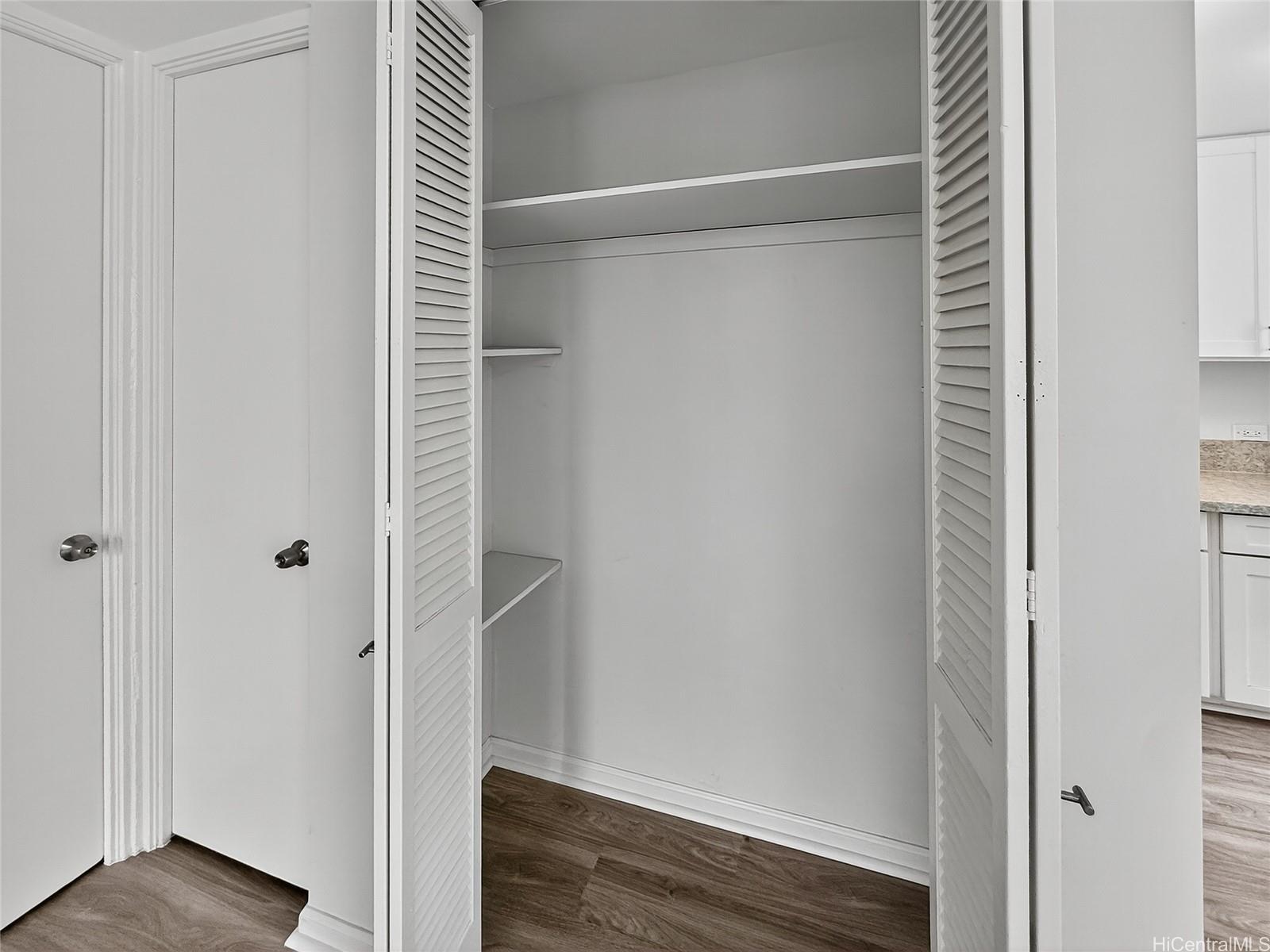 Great location, This convenient and comfortable newly renovated 2-bedroom, 1-bathroom corner unit offers the perfect balance of functionality and comfort. Installed with all modern hidden wire LED lighting, new fans and AC in every room for your comfort. Newly installed vinyl flooring throughout, Cinder block wall patched up & Popcorn ceiling removed! Updated Kitchen with huge 29 Cu. ft refrigerator and new wall niche tub style finish shower. All custom built closets throughout for extra storage room and all your storing needs. With an Extra long parking stall that can fit one 8ft bed truck or may fit up to two small compact vehicle. Features community laundry area. Nearby to Freeway, Ward, restaurant, Blaisdell center, shops for your convenient & travel!