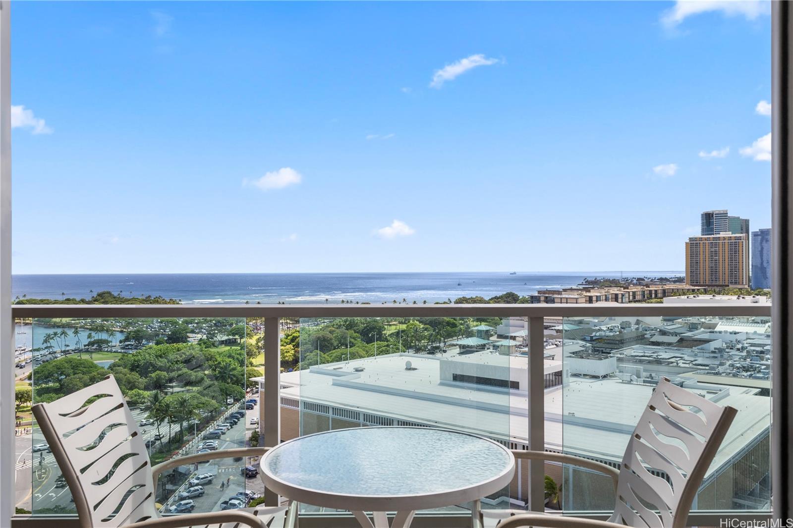 Experience elevated island living in this 17th-floor 1-bedroom residence at the Ala Moana Hotel Condo, showcasing beautiful ocean views and a seamless blend of indoor and outdoor comfort. The spacious living area features sliding doors that open to create a breezy, open-air ambiance, while the bedroom extends to a private lanai overlooking the coastline. With direct connection to Ala Moana Center, this residence offers convenient access to beaches, dining, shopping, and entertainment. Enjoy resort-style amenities including a recently updated pool area, state-of-the-art fitness center with sauna, on-site dining options including the signature rooftop steakhouse, meeting facilities, and complimentary Wi-Fi. Whether used as a personal retreat or a turnkey vacation rental, this property offers a rare combination of comfort, style, and location in the heart of Honolulu.