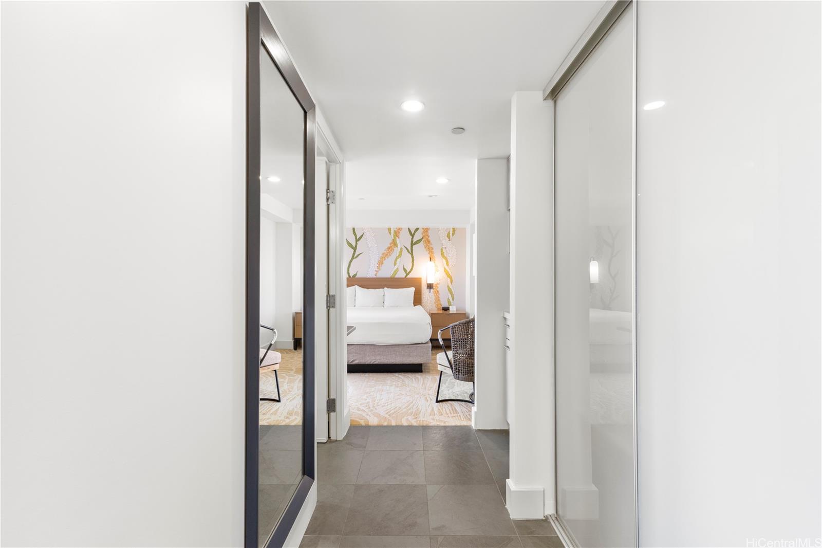 アラモアナホテルコンドミニアムの17階に位置する1ベッドルームレジデンスで、ワンランク上のアイランドライフをご体験ください。美しい海の景色と、屋内と屋外の快適な空間がシームレスに融合しています。広々としたリビングエリアには、風通しの良いオープンエアの雰囲気を演出するスライドドアが備え付けられており、ベッドルームからは海岸線を見下ろすプライベートラナイへと続きます。アラモアナセンターに直結しているため、ビーチ、レストラン、ショッピング、エンターテイメントへのアクセスも便利です。最近改装されたプールエリア、サウナ付きの最新鋭のフィットネスセンター、自慢の屋上ステーキハウスを含む館内レストラン、会議施設、無料Wi-Fiなど、リゾートスタイルのアメニティをお楽しみください。プライベートな隠れ家として、あるいはすぐに利用できるバケーションレンタルとして、この物件はホノルル中心部という絶好のロケーションで、快適さ、スタイル、そして他に類を見ない融合を提供します。