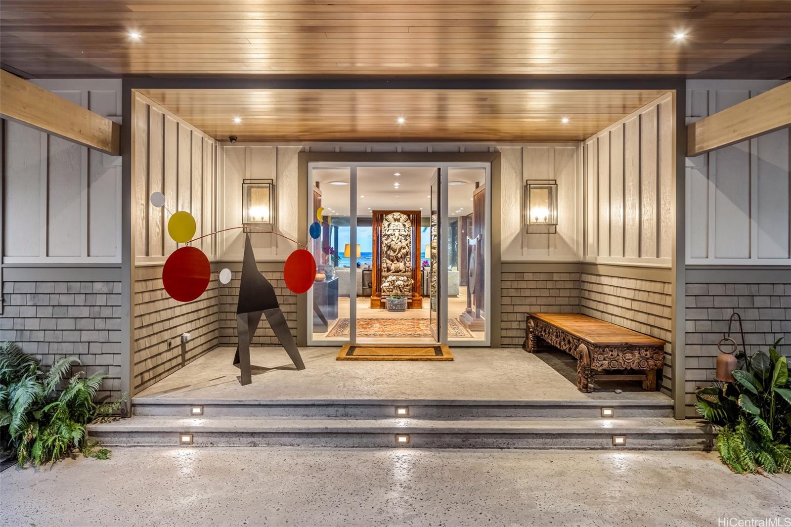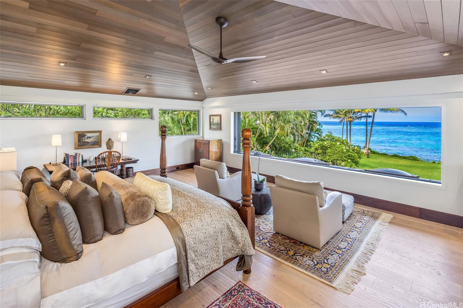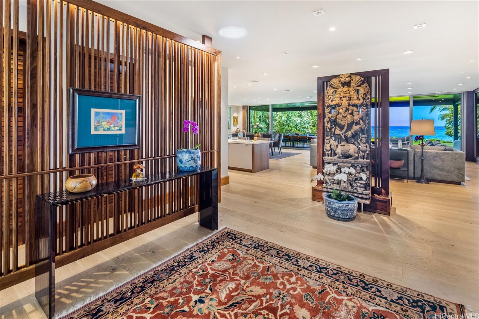 nearly 1 acre, this oceanfront property includes 152 linear feet along the Pacific Ocean. Nestled in a private, gated location, the 2 lot compound offers over 8600 sq ft of living area in its main house, guest house, cottage, and studio. Expansive lawns provide mesmerizing views across the ocean to Manama (Rabbit) Island and stunning vistas of the Koolau Mountains. The main house completed in 2022, sets a new standard of quality craftsmanship. Exceptional design, flawlessly executed using premium materials, creates a luxurious, beautiful, and comfortable home. Floor to ceiling sliding glass doors span the oceanfront side, providing spectacular views of the lush landscaping and ocean. The gourmet kitchen includes top of the line appliances, custom walnut cabinetry, and a disappearing pantry consistent with its sleek, modern design. Next door includes a 3BR oceanfront guest house, 2BR cottage and studio. This irreplaceable compound offers its next owner an opportunity to enjoy a spectacular lifestyle with family and friends in a magnificent oceanfront setting.