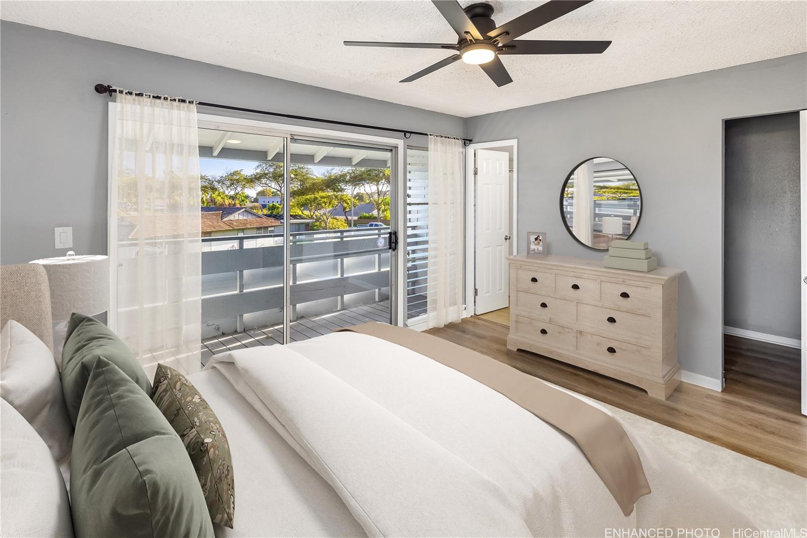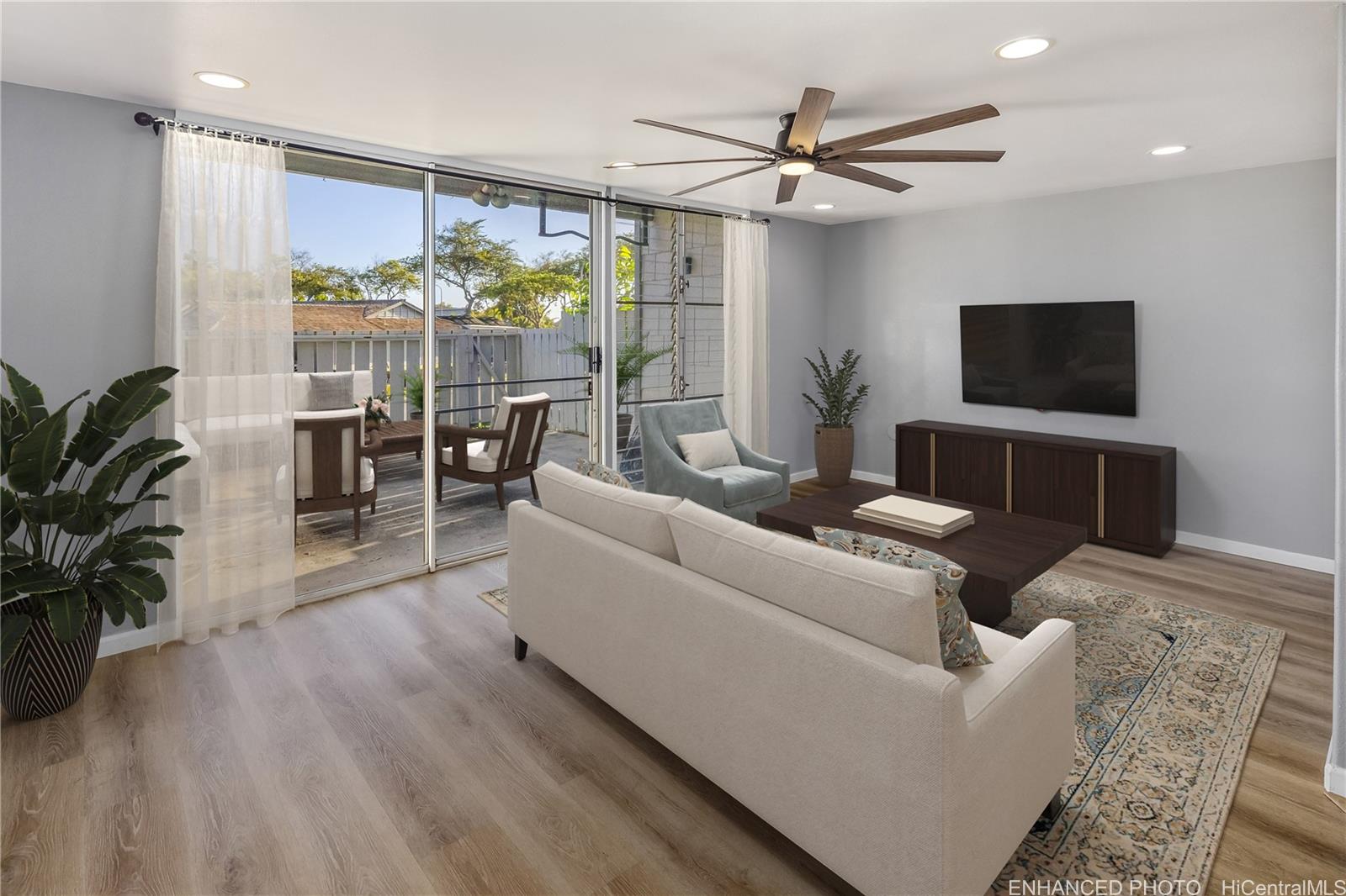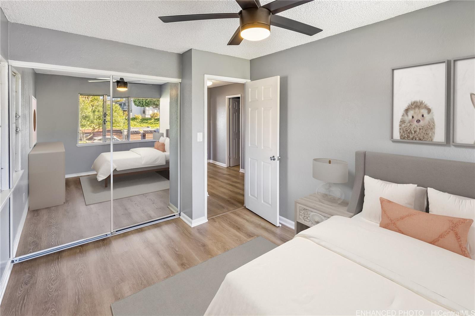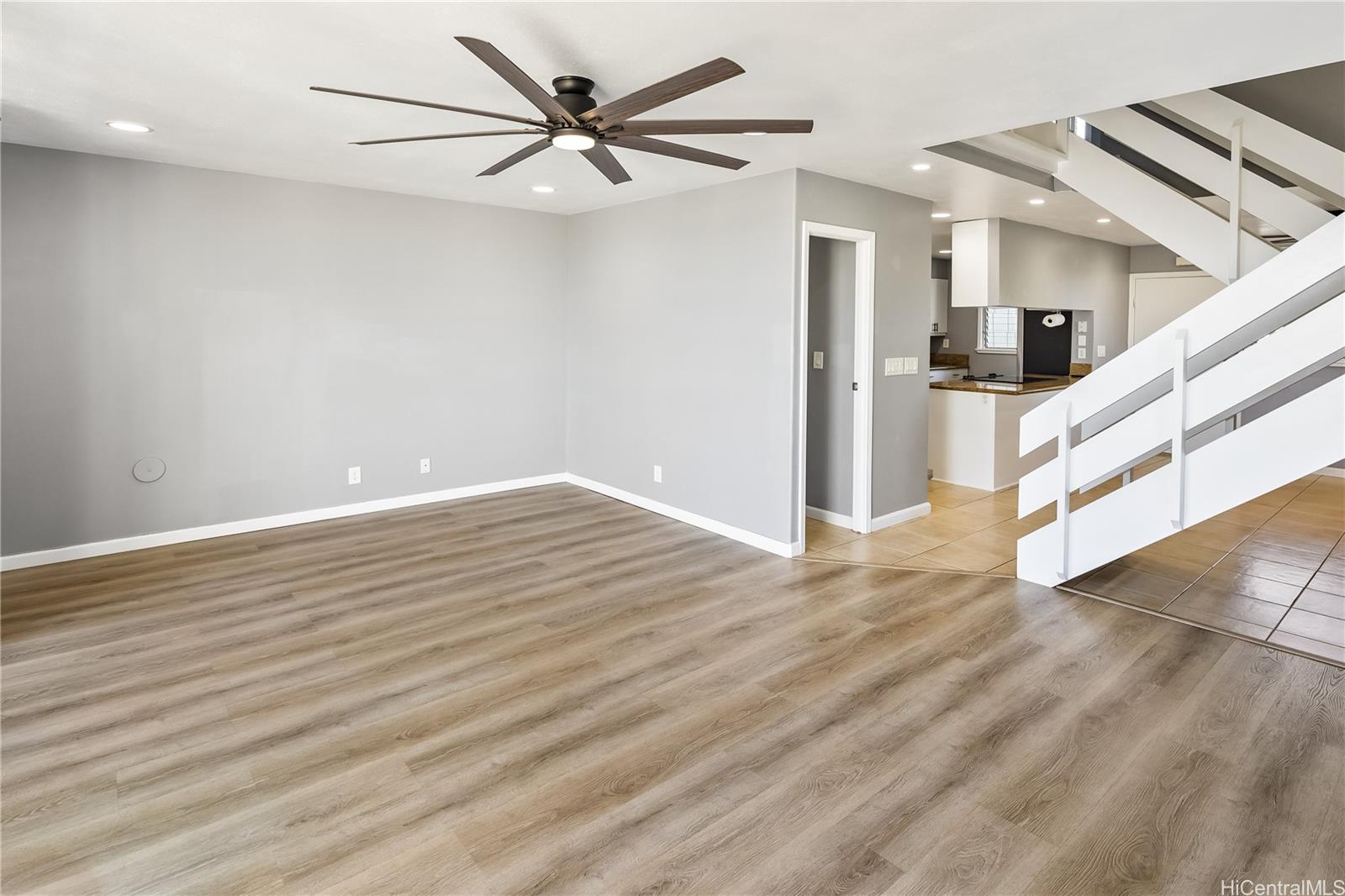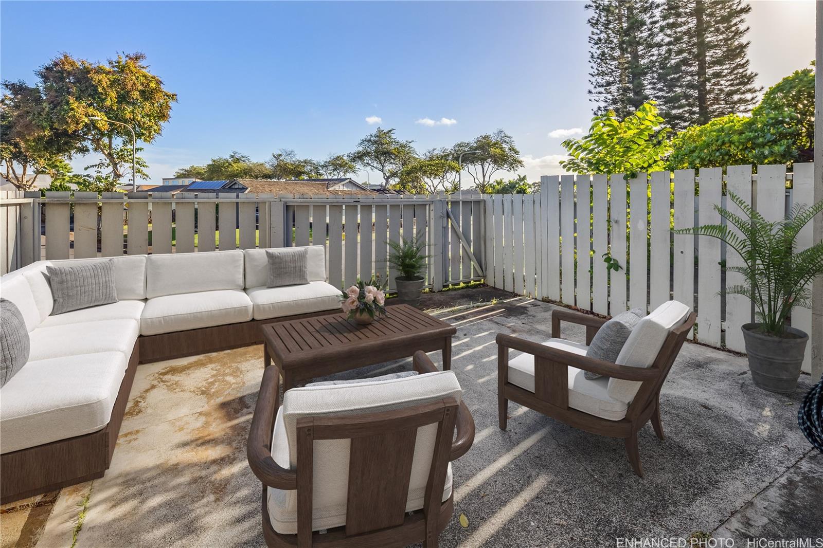 Welcome to Holaniku Hale, one of Mililani’s most desirable townhome communities! This spacious 3-bedroom, 2.5-bath corner unit residence offers the comfort of a single-family home with the convenience of townhome living. Enjoy a bright and open floor plan with a generously sized living room, dining area, and a functional kitchen perfect for everyday use. The home features two private fenced areas, one at the entryway and one in the backyard, ideal for outdoor dining, pets, or gardening. Upstairs, you’ll find three well proportioned bedrooms with ample closet space, including a primary suite offering excellent privacy, its own full bathroom, and a private lanai perfect for morning coffee or a quiet retreat. The second level also includes a generously sized closet attached to the landing, providing valuable additional storage. An additional full bath serves the remaining bedrooms, while a convenient half bath is located on the first floor. The home includes two assigned parking stalls, one in a shared carport that features a private storage closet, and this unit is situated close to guest parking for added convenience. Don’t miss your chance to make this beautiful home your own!