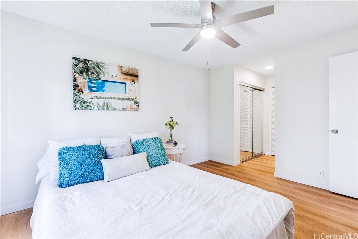 Ready for you to move right in! This newly renovated unit features brand-new luxury vinyl flooring, fresh interior paint, new kitchen and bathroom cabinets and drawers, and beautiful quartz countertops throughout. The kitchen is equipped with new stainless-steel appliances—perfect for cooking up your favorite local dishes. Enjoy the cool comfort of AC units in every bedroom and the living room. Conveniently located just a short stroll to the pool, BBQ area, and the site manager’s office, this building sits near the entrance of the complex—not too far in—and is surrounded by well-kept grounds that give the community a clean, island feel. Be adventurous in Ewa Beach, where you’ll find plenty of shopping centers, hidden “hole-in-the-wall” eateries, and activities within this vibrant community! First Open House Sunday 12/14 2pm-5pm!
