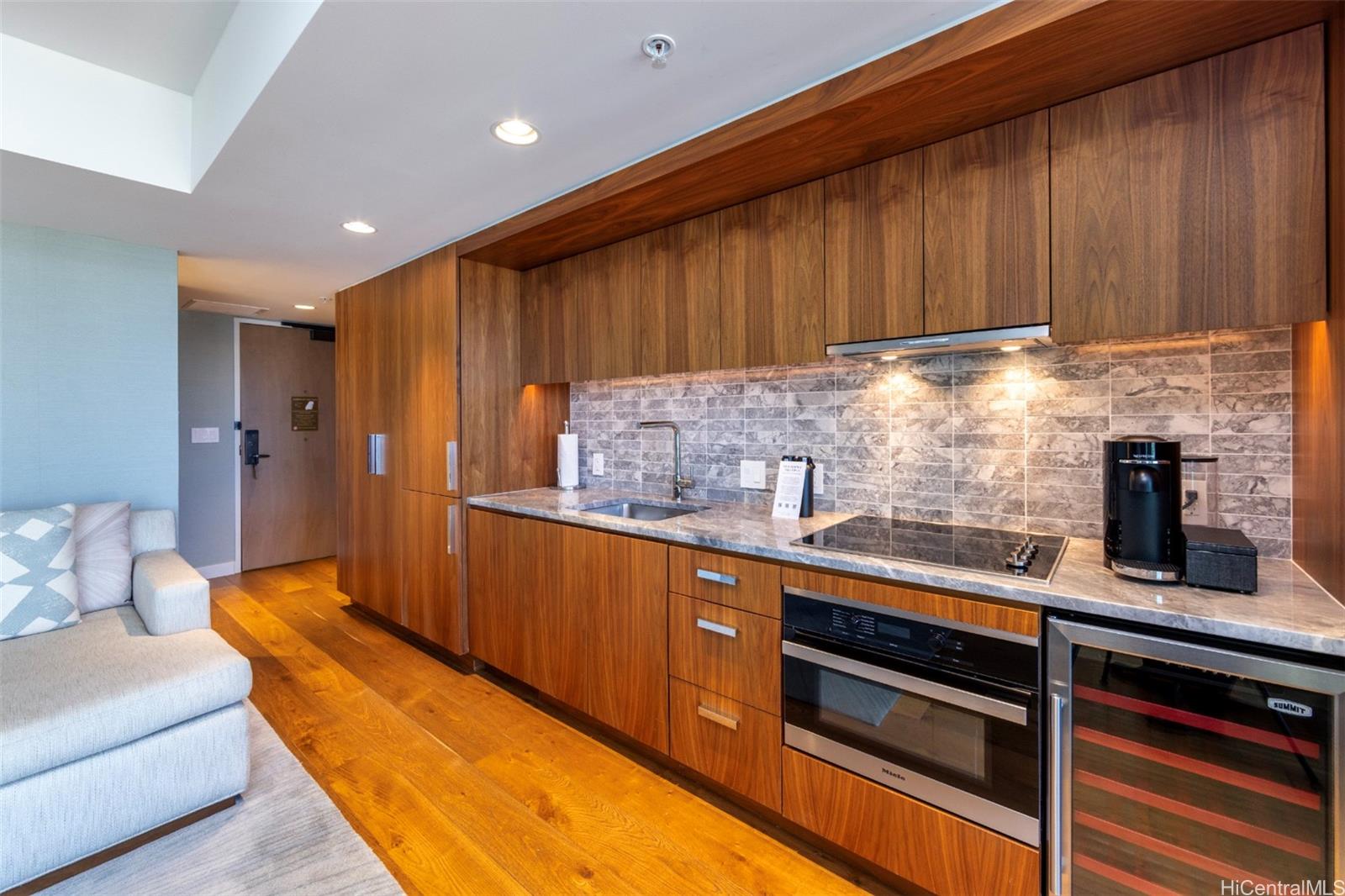 Island-Style Luxury meets 5-Star Resort Resort Living at the Ritz-Carlton Residences Waikiki. Located in the newer Diamond Head Tower 2 completed in 2018, this 1 bedroom, 2 full bath end-unit enjoys stunning 180-degree views of the Pacific Ocean, partial Diamond Head, Ala Wai Canal, and Ko'olau Mountains. Enter to find a contemporary floor plan combining living, kitchen, and dining spaces. A private lanai just off the main living area is the perfect place to enjoy morning sunrises with views of paradise. The bedroom suite also features direct Diamond Head and Ocean views, and features a true resort ensuite bathroom with separate deep soaking tub and walk-in shower. Centrally located in Waikiki, fine dining, high-end shopping, sandy beaches, stretching coastlines, and water activities are just minutes away. A Lifestyle of Luxury awaits at the Ritz. This property is an ADA-compliant unit.