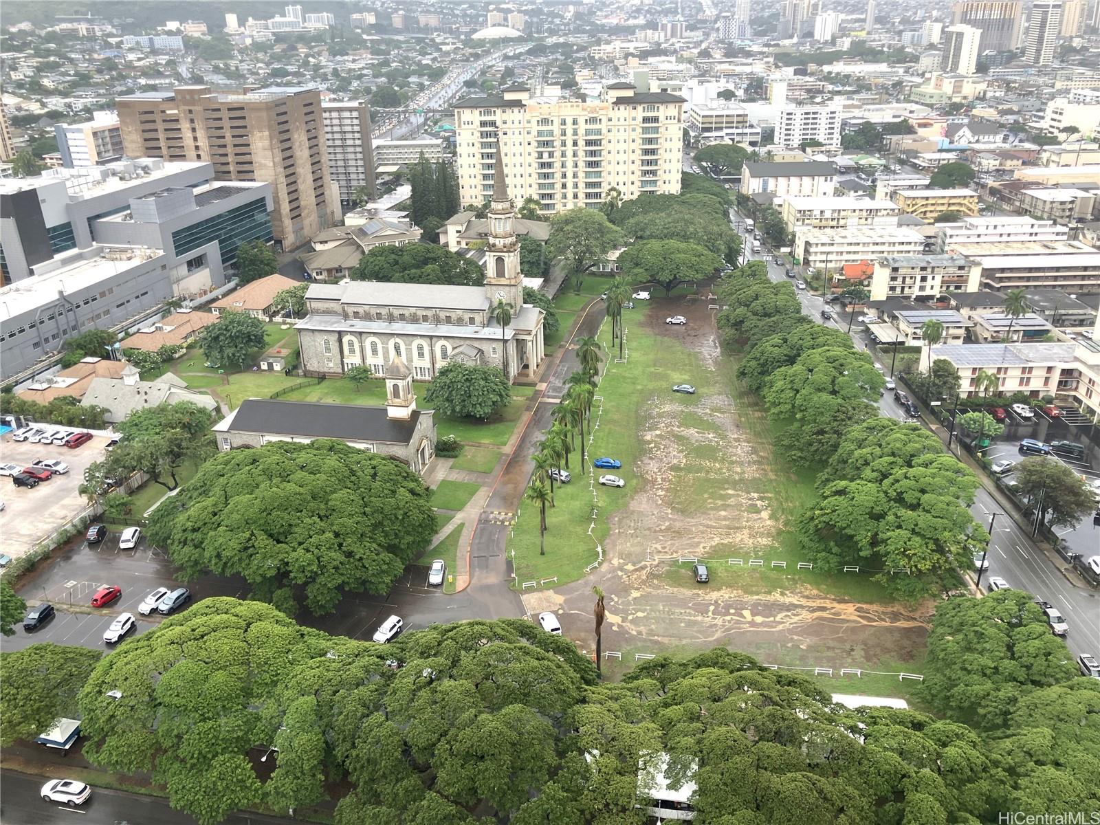 High floor with fabulous views of Diamond Head, city, ocean. Overlooks Central Union Church. Building has recently completed its plumbing project and SELLER HAS PAID OFF THE ASSESSMENT! Brand new range and range hood. Drapes just 2 years old. Plumbing and electrical fixtures inspected and cleared. 2 new toilets. Natural light brightens the unit. Lot of storage in hallway. Central location to schools, hospital, churches, shopping--all the benefits of living in town! Lots of guest parking and nice amenities, including a heated pool, meeting room, BBQ area, 24-hour security, bike rack, surfboard storage. New pool/pool deck/pool furnishings. Meeting/party room newly refurbished Maintenance fee is for 2026 (increase of 4%). VA-approved. Sorry, not pet-friendly. If your buyer is looking for a good location/convenience, space, storage, 24/7 security patrol, useful amenities, call to see this 2/2!