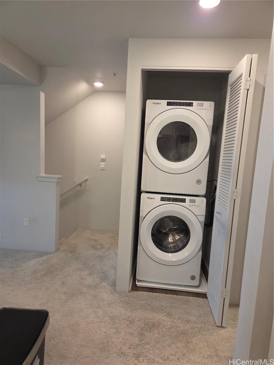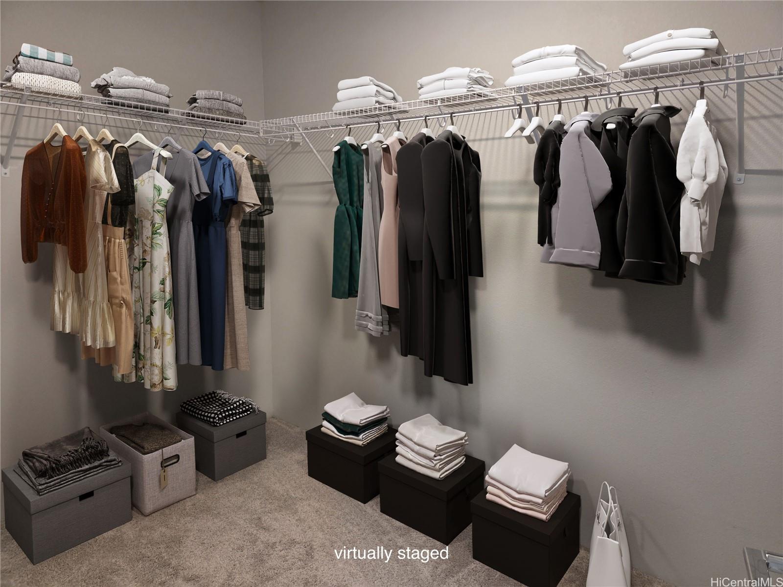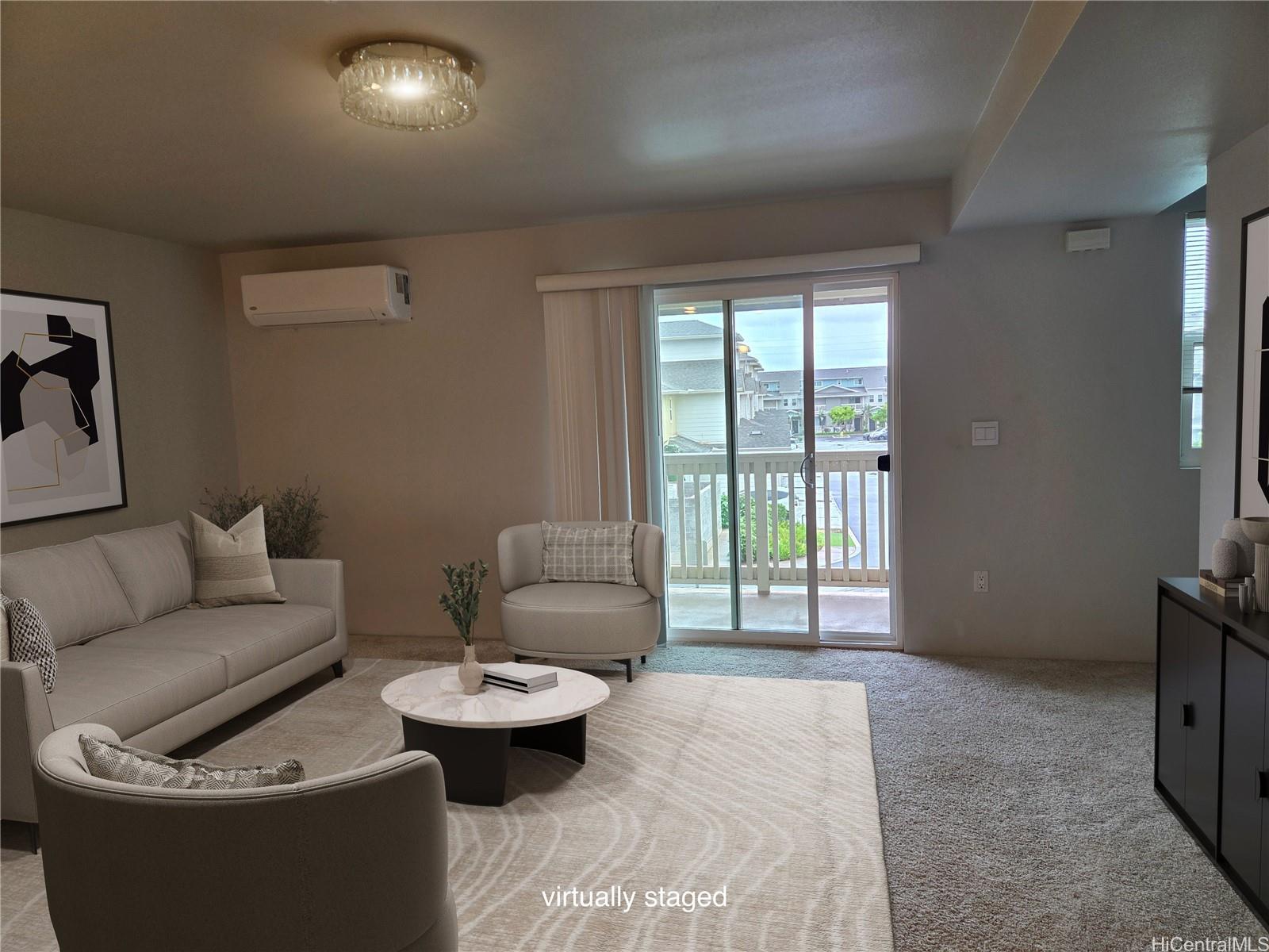 Great opportunity for a qualified Buyer to live in beautiful Kohina at Ho'opili in the Ho'opili Master Planned Community. Priced below appraised value. One of the larger floor plans with a spacious 1,283 sq ft living area, 2 bedrooms, 2 full baths and a half bath. The primary bedroom takes up the entire second floor, walk-in closets in both bedrooms, and a covered balcony. Includes split ACs, fire sprinklered complex, Mohawk carpeting-Swiss Alps. Vinyl PLank Pioneer Flooring-Gothem Grey, LG Hi-Mac kitchen and bath countertops, undermount single bowl kitchen sink. Whirlpool stainless steel range/oven, microwave, dishwasher, Whirlpool stainless steel refrigerator, and stacked washer/dryer. Restaurants, shopping at Ka Makana Ali'i Mall, theaters, schools/UH West Oahu, and the rail station. Soho Community Center with a community association pool, a dog park, tot lot, and near golf courses.