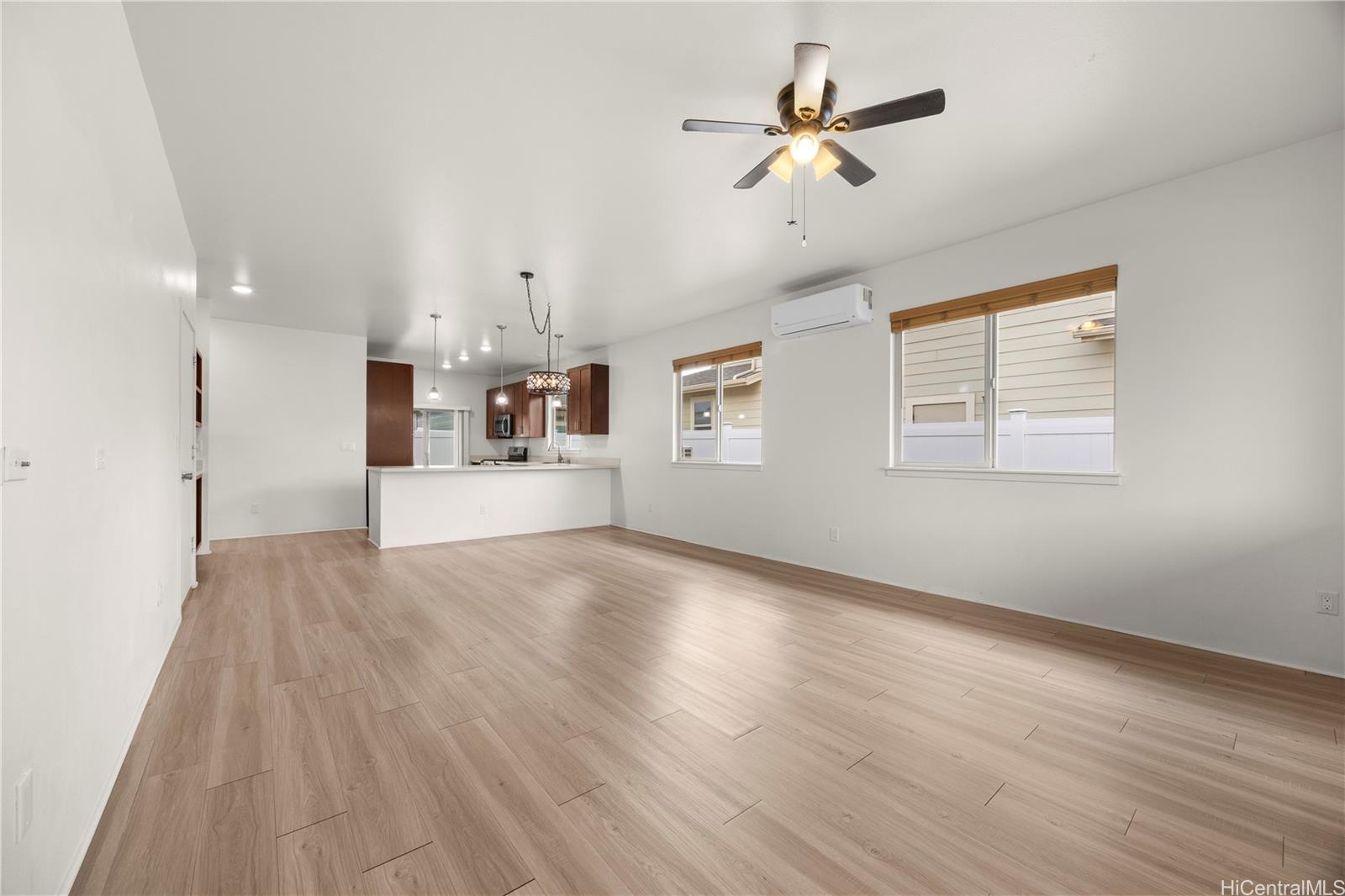 Highly desirable single-level 3 bedroom, 2 bathroom home located in the master-planned community of Ho‘opili. This well-maintained residence features an open concept layout with luxury vinyl plank flooring throughout the main living areas and carpeted bedrooms for added comfort. The modern kitchen is appointed with upgraded countertops and ample cabinetry, ideal for both everyday living and entertaining. Enjoy year-round comfort with split AC units in every room. The attached garage includes overhead storage, maximizing functionality and space. Conveniently located near parks, walking paths, shopping, dining, and easy access to major roadways and the Skyline. A great opportunity to own a single level home in one of Ewa Plain’s most sought after communities.