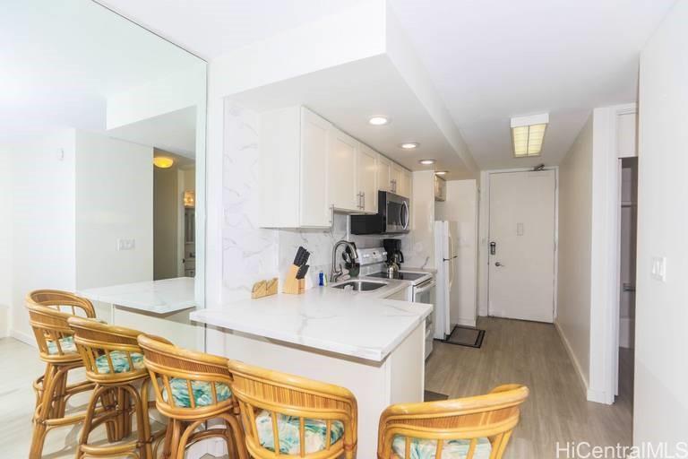 Beautifully remodeled unit at the Ilikai Marina Building. A legal daily short-term vacation rental in a highly sought-after Waikiki resort location. This cozy turnkey unit features a thoughtfully updated interior with modern finishes, new vinyl flooring and a fully renovated kitchen with all essentials for home cooked meals. Just a short stroll to the beach, you’ll have easy access to sun-soaked days by the beach/ocean. An efficient open layout ideal for owners and guests, close to Ala Moana Shopping Center, Magic Island, World-class dining, and Marina activities. This property offers outstanding convenience and strong rental potential in a well-maintained, 24/7 security building for your peace of mind. An excellent opportunity for investors or as a personal retreat with the flexibility of legal vacation rental use. All furniture included at closing. AC special assessment is $45.53 (AC upgrade work payable till May 2031), Cable TV/Internet ($58.46) are charged separately. Electricity and AC charge are sub-metered and invoice every month with maintenance fee. Maintenance fee is $714.08 per month.