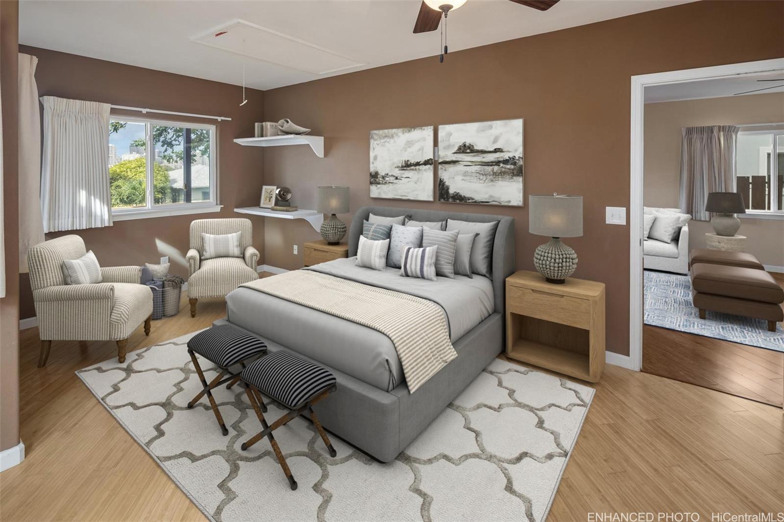 Excellent opportunity to own in one of Honolulu’s most sought-after neighborhoods at a great price. Completely updated 2-bedroom, 2-bath home offers a functional and flexible layout, with the primary suite on the main level featuring a whirlpool tub and low-curb shower. The upper level includes a generously sized second bedroom with a walk-in closet and full bath. A spacious kitchen is highlighted by a beautiful island and quality KraftMaid cabinetry. A comprehensive 2012 remodel included updated plumbing, electrical, and dual-pane vinyl windows. Ideally located just minutes from beaches, shopping, dining, KCC, Kapi'olani Park, and more!