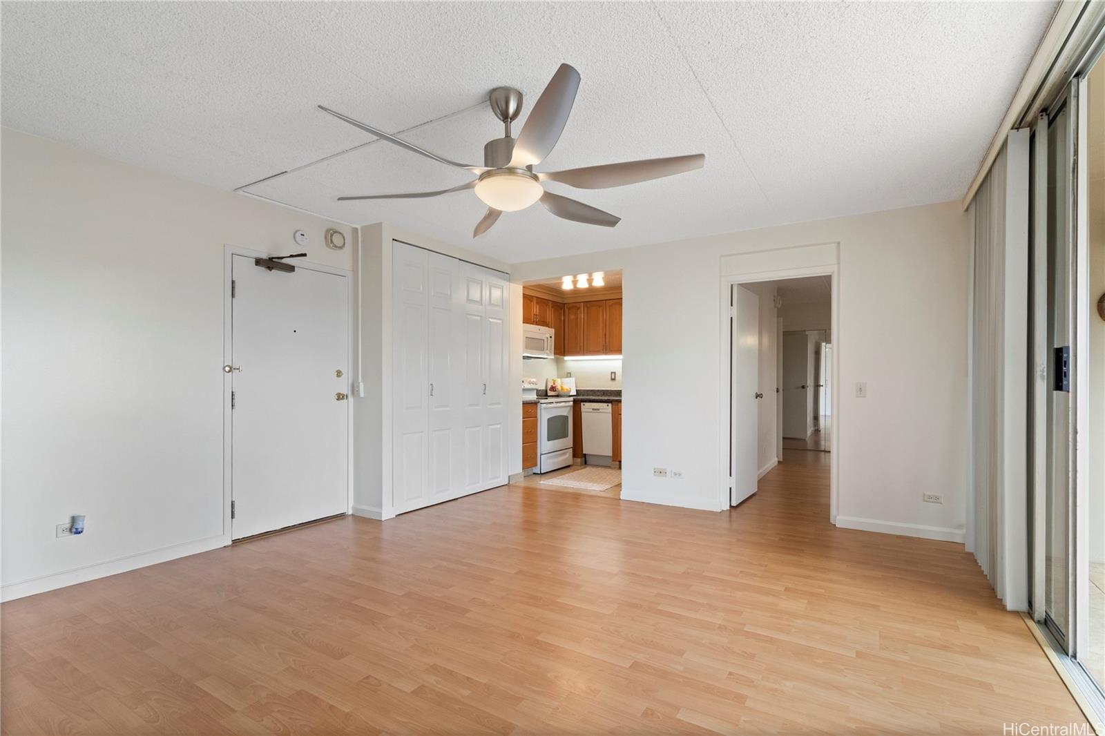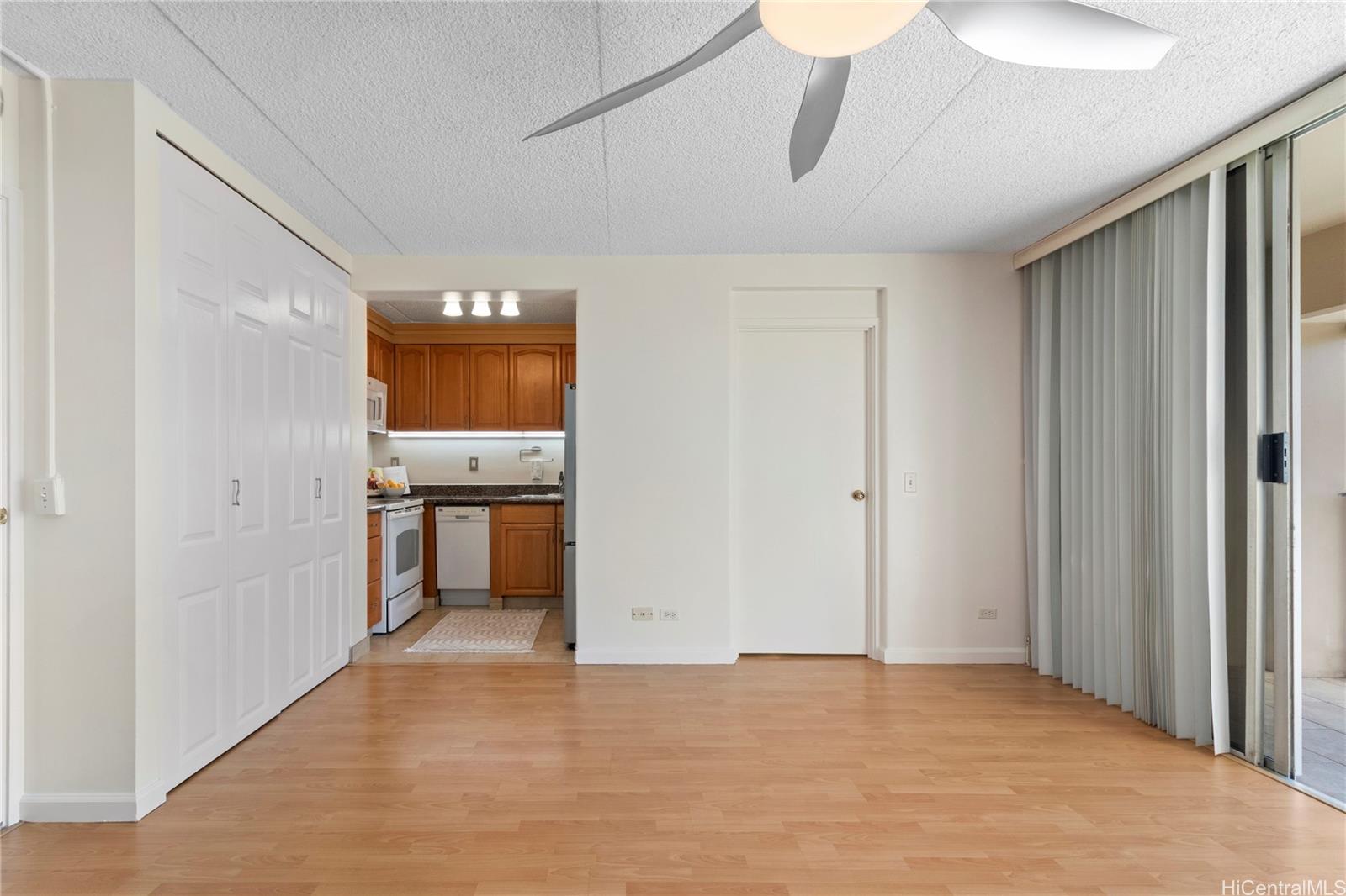 Spacious 1-bedroom at Keoni Ana, ideally located at the quiet gateway of Waikiki. This well maintained unit is perched above the parking levels over looking DeRussy Park. Open living area, private lanai, and great natural light throughout. The home has been updated over the years with the most recent improvement being fresh interior paint throughout. Keoni Ana is a secure, well manage building offering guest parking and 24-hour security patrol. Prime location just minutes from Waikiki Beach, Ala Moana, shopping, dining, and major bus lines. Perfect for owner-occupants, investors, or as a Honolulu retreat. Easy to see, schedule your private showing today!