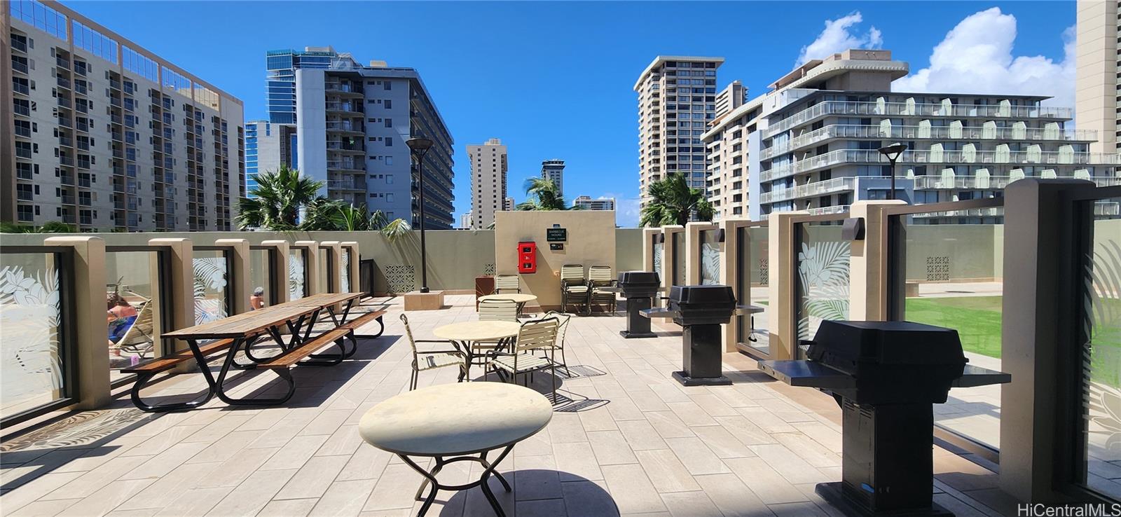 Fee simple 1 bedroom, 1 bath unit with 1 assigned covered parking stall in the heart of Waikiki! Popular building on Kuhio Avenue with lots of amenities. Easy access to soo many conveniences and near access to the beach. East facing unit offers sunrises and cool comfortable living! Enjoy city views from your lanai. Unit features upgraded bathroom, vinyl plank flooring in the living area, window air conditioner, ceiling fan and more!
