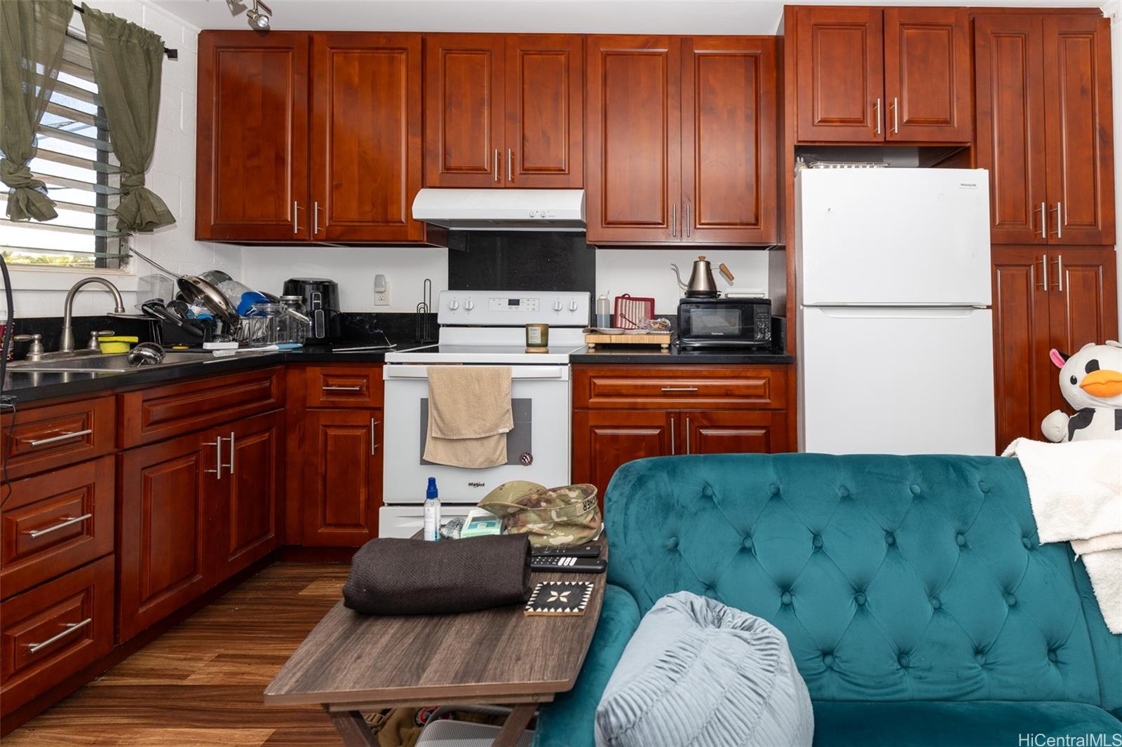 Well maintained property with 5 renovated units: 4 studios in 2-story hollow tile building and a wood 3/1 house with 7 legal parking stalls + 2 tandem (total of 9 possible). Live in the house and pay your mortgage using the studios' income! Located close to Wahiawa General Hospital but tucked away on a shared driveway with 2 other properties, this gem of a money-maker has owned coin laundry. House has its own washer dryer inside. All units separately metered electric, 1 water meter. #D building was re-roofed in 2023, buildings painted and new gutters. All interiors redone within the last 10 years; redone copper plumbing and electric wiring for house and 2 upstairs units; transferable termite warranty. DPP shows previous zoning was B-2, current zoning is R-5. See Agent/showing notes for more info!