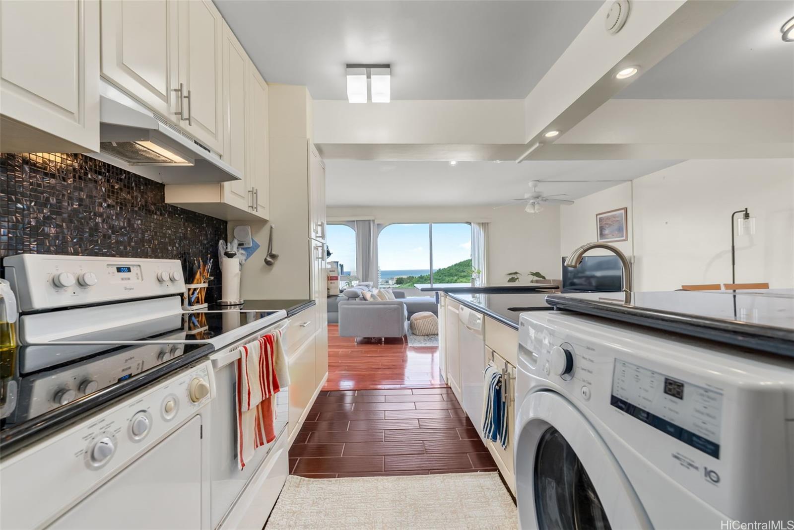 Enjoy breathtaking ocean and city views from this beautifully upgraded 2-bedroom, 2-bathroom unit featuring nearly 1,200 square feet of living space and 2 separate parking stalls. Located at the base of Punchbowl, this serene neighborhood is just 2 miles from Downtown Honolulu, Straub Hospital, Queen's Medical Center, the University of Hawaii, and Punahou/Maryknoll Schools. Move-in ready, the unit boasts granite countertops, laminate flooring, a washer/dryer, an upgraded open-concept kitchen, and has had the popcorn ceilings removed. This well-maintained boutique building offers 100% hurricane coverage, along with recent updates including new wastewater pipes and an upgraded fire alarm system. This is a fantastic opportunity to own a move-in-ready condo in a prime location with excellent building improvements and low-maintenance island living.