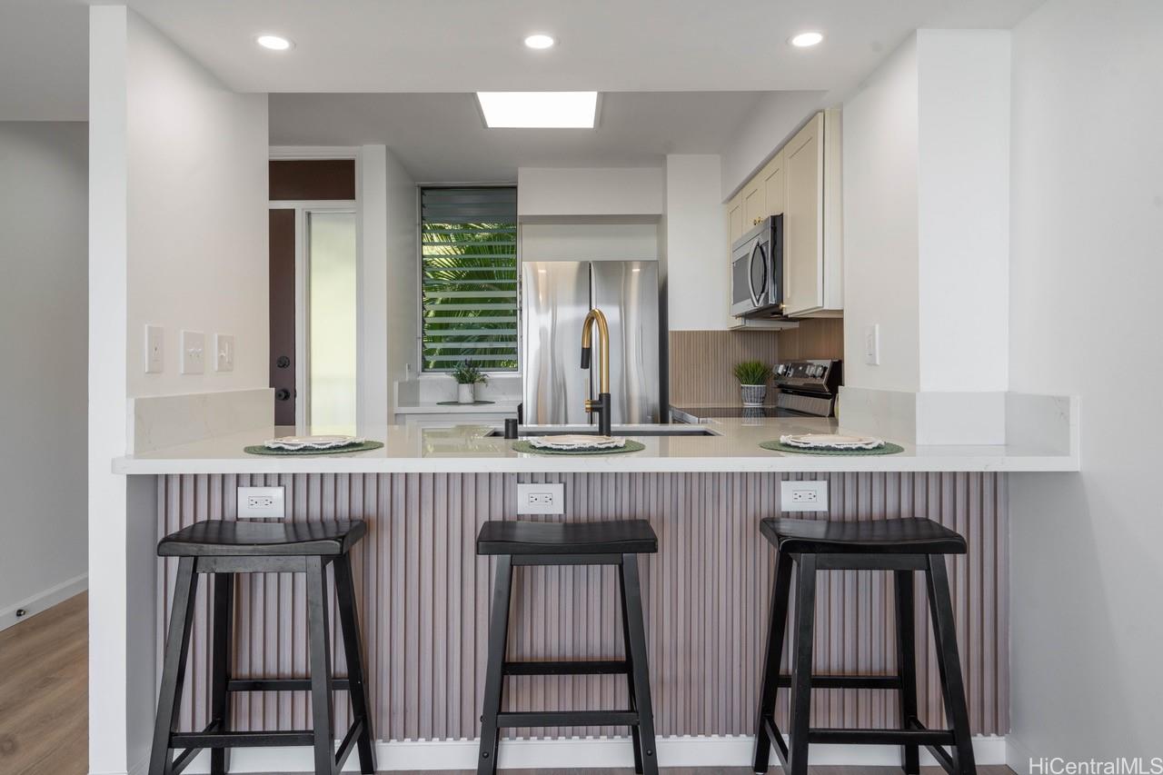 マカハ・バレー・タワーズの1ベッドルームを全面改装しました。ラナイからは海と山の景色を望めます。敷地の上層階に位置し、正面玄関やセントラルエアコンのある建物からは離れています。24時間体制のセキュリティ、プール、バーベキュー設備、共用ランドリーを完備し、バス路線へのアクセスも良好です。管理費にはセントラルエアコン、電気代、温水、ケーブルテレビ、インターネット接続が含まれます。コストコ、ホームデポ、レストラン、映画館などが集まるカポレイまでは約15マイルです。