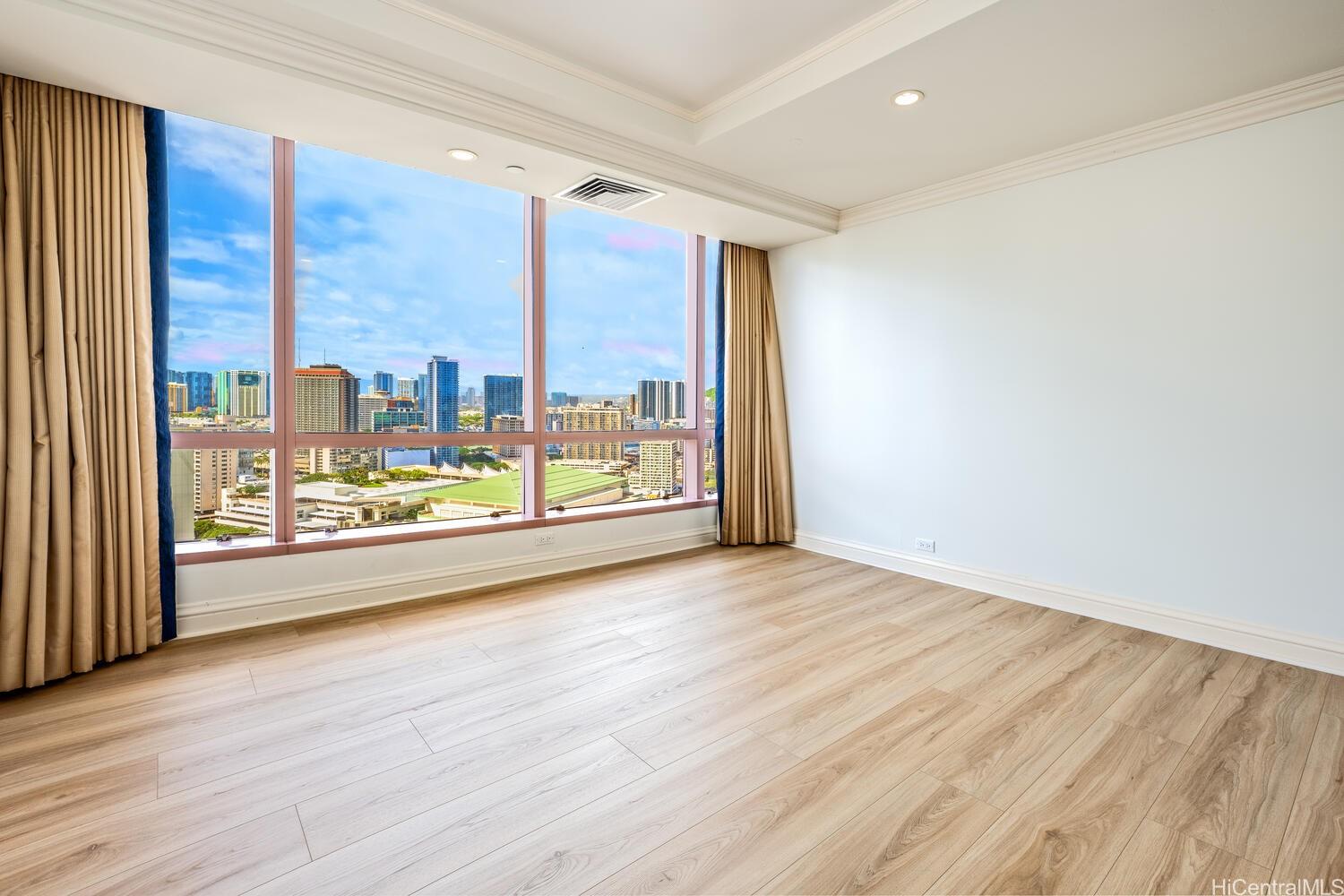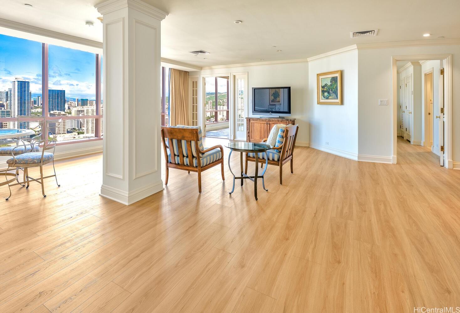 ワイキキランドマークは、世界的に有名なワイキキへの玄関口という絶好のロケーションです。2ベッドルーム、2バスルームのペントハウスは、広々としたリビングとダイニングエリア、設備の整った内装、そして街と海の雄大な景色を誇ります。ユニット全体に新しいフローリングと塗装が施されています。35階まで直通の専用エレベーターでプライバシーも確保されています。館内には、多言語対応スタッフによるコンシェルジュサービス、24時間体制のセキュリティ、改装済みのフィットネスセンター、会議室、そしてリゾートスタイルの3つのプール、ジャグジー、バーベキュー/エンターテイメントエリアを備えた素晴らしい屋外レクリエーションデッキなどのアメニティをご用意しています。駐車場2台分付き。リゾート複合用途地域です。