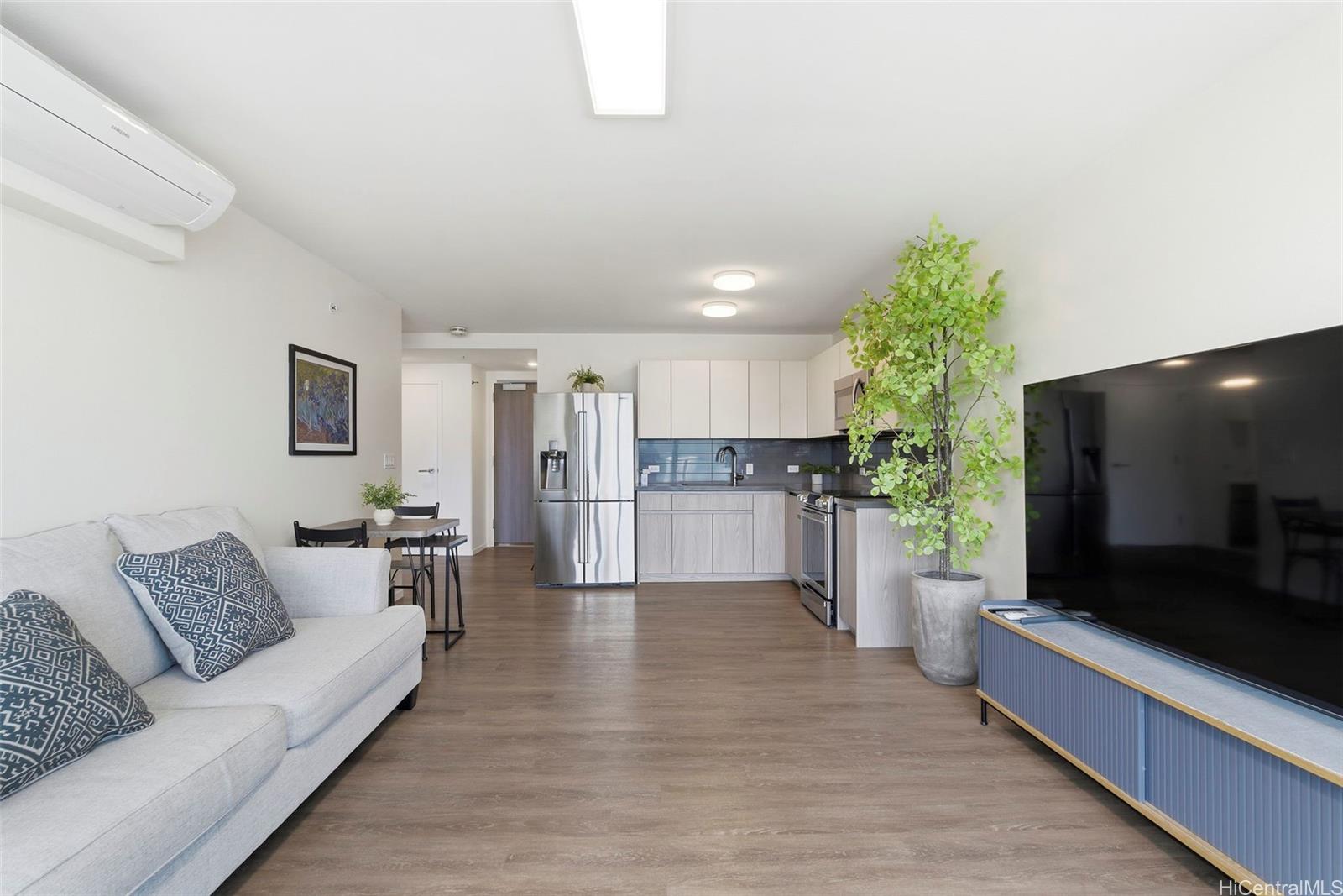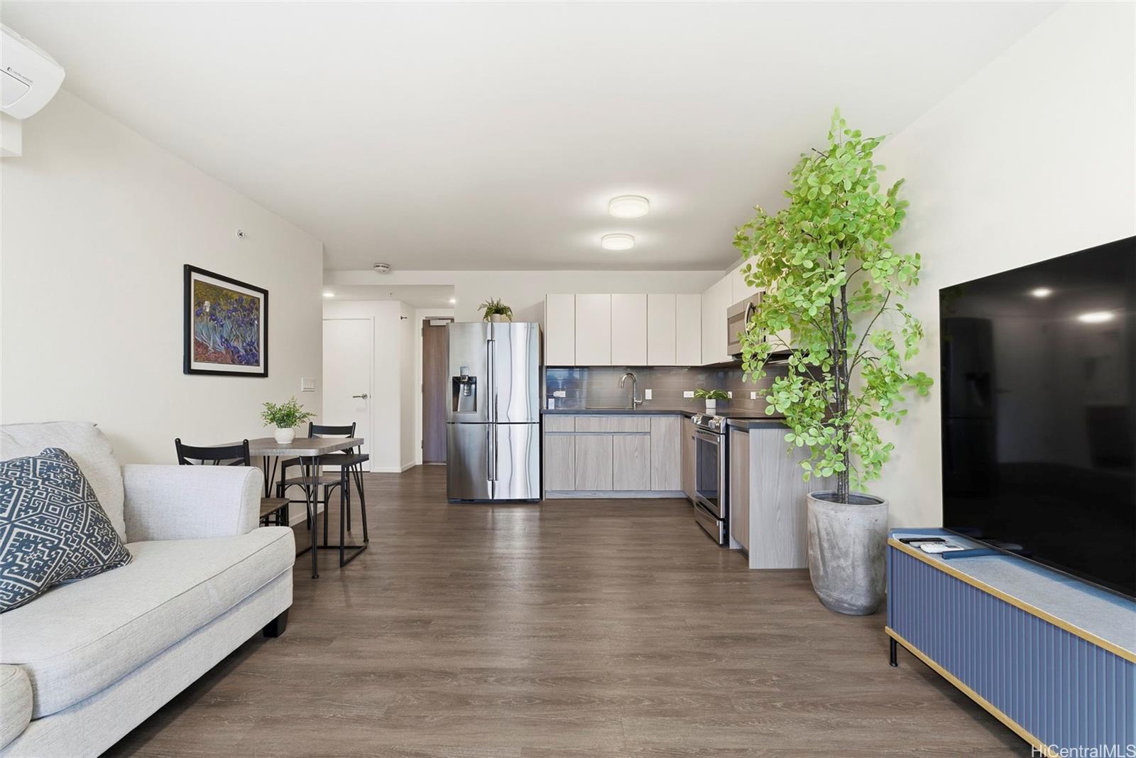 カピオラニ・レジデンス40階で、ワンランク上の暮らしをご堪能ください。新築同様の家具完備の1ベッドルーム、1バスルームのコンドミニアムは、山と街のパノラマビューを望む洗練された都会の隠れ家です。プライベートラナイが居住空間を拡張し、ホノルルのダイナミックなスカイラインを一望できます。室内は完璧に整備されており、すぐにご入居いただけます。メインのリビングエリアにはラミネートフローリングが敷かれ、設備の整ったキッチンにはステンレス製の家電製品とモーションセンサー付きのキャビネット下照明が備わっています。リビングルームとベッドルームにはリモコン式の遮光ブラインドが設置され、プライバシーが確保されています。また、各スペースにはスプリットエアコンが設置されており、年間を通して快適な温度調節が可能です。ベッドルームには贅沢なカーペットが敷かれ、美しい景色をお楽しみいただけます。ユニット内には、スタッキング式の洗濯機と乾燥機、そして2つの独立した収納クローゼットを備えたプライベートランドリールームがあります。セキュリティの高い建物には、バーベキューエリア、レクリエーションデッキ、会議室、EV充電ステーション、専用駐車場1台など、リゾートスタイルのアメニティが揃っています。ハワイコンベンションセンター、アラモアナ、そして世界的に有名なビーチの近くに位置するこのターンキーレジデンスは、贅沢、利便性、そしてワンランク上の島の暮らしを楽しめる貴重な機会を提供します。