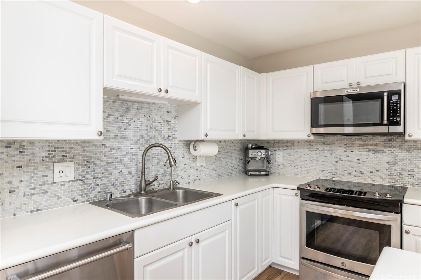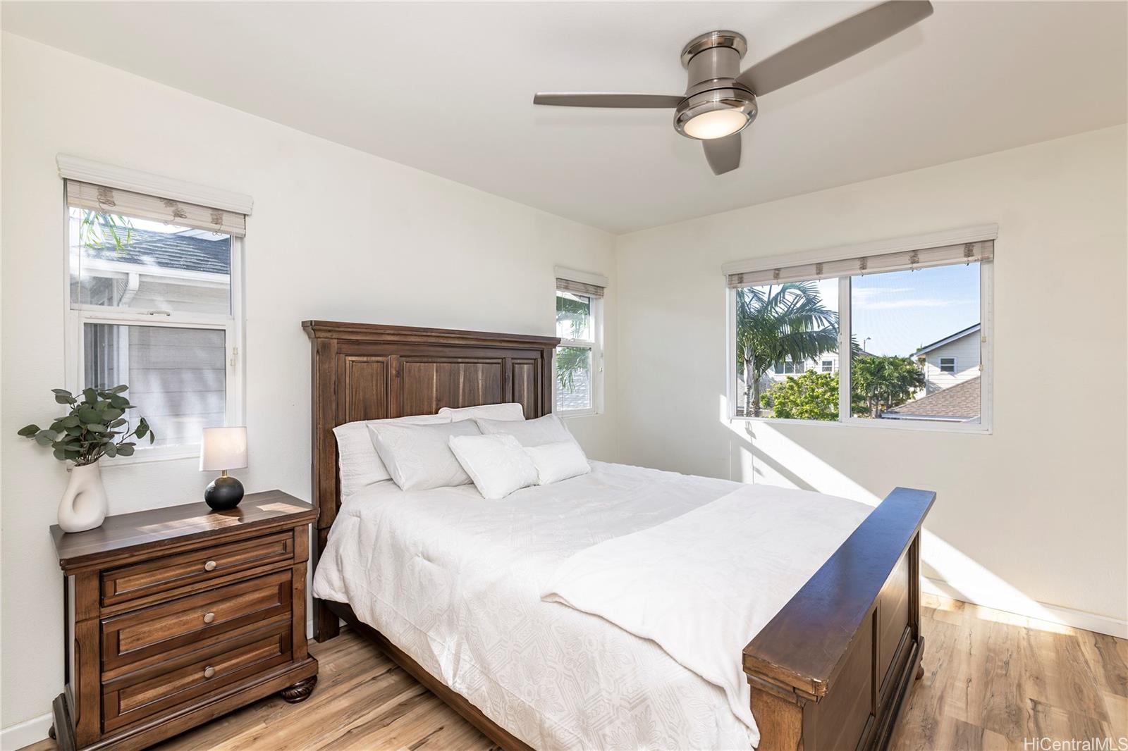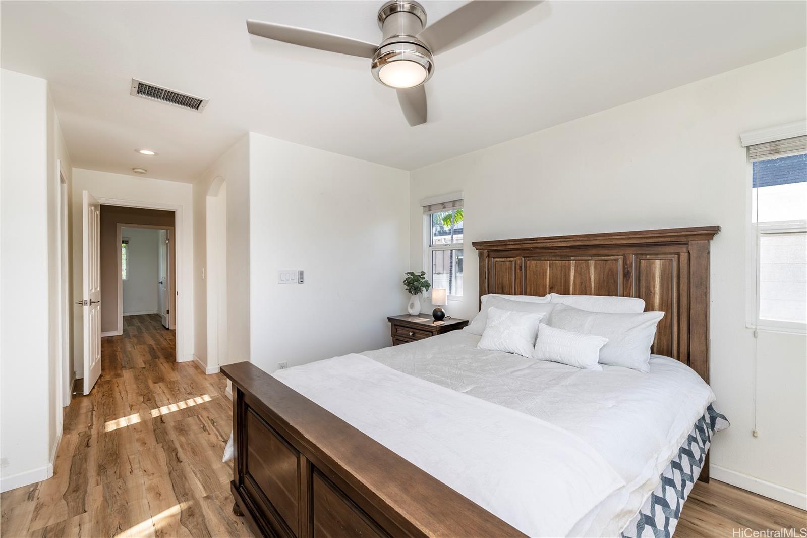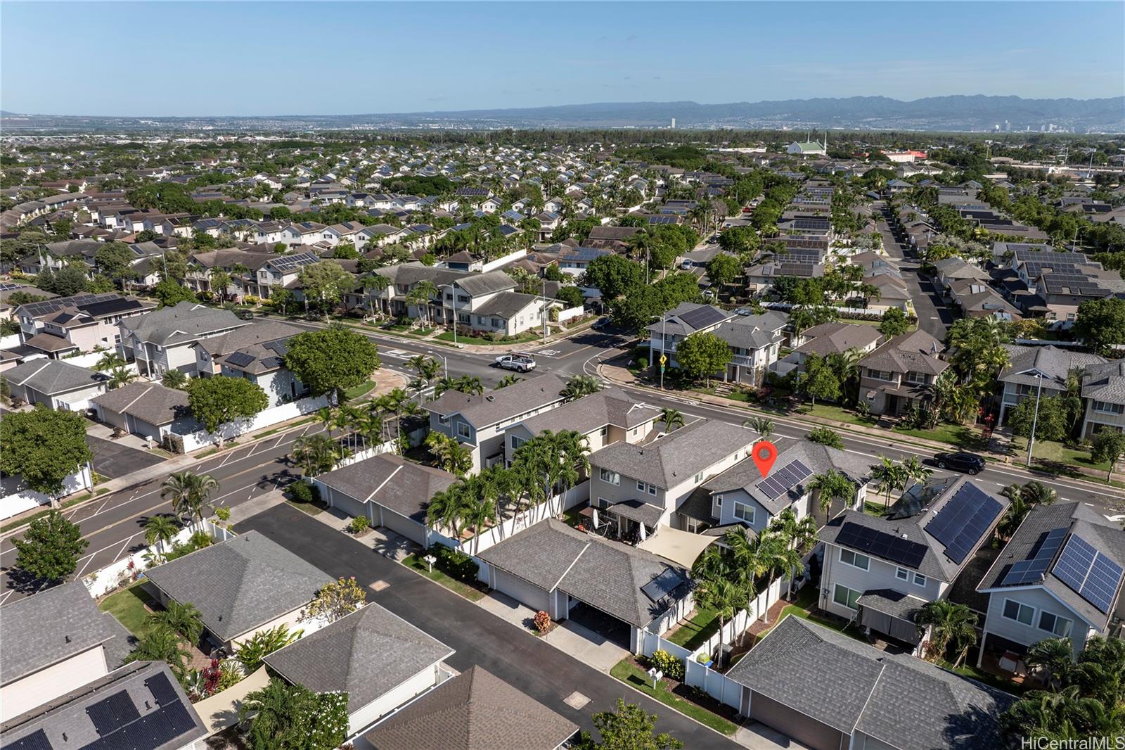 Immaculate 3 bed 2.5 bath with a ground floor den! An open and efficient floor plan flows seamlessly from kitchen to dining to living. Flooring throughout the home has been upgraded to luxury vinyl planks. A spacious, fenced in, yard presents the ideal setting to entertain family and friends. Stay cool on those warm summer months with central AC powered by 6 PV panels on net metering. Conveniently located minutes away from Wai Kai, Laulani Village Shopping Center, Costco, world class golf, and much more!