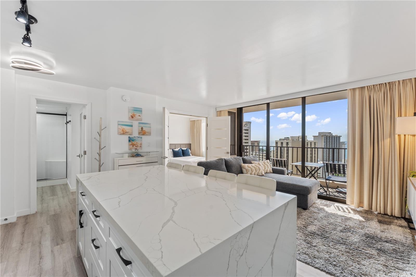 大変人気の高いワイキキ・バニヤンの高層階に位置するこの美しく改装された1ベッドルーム、1バスルームのレジデンスは、島の涼しい風と心地よい海の景色を堪能でき、ワンランク上のワイキキライフをお届けします。思慮深くデザインされたインテリアは、モダンな仕上げ、豊富な自然光、そしてリラックスにもエンターテイメントにも最適な快適な間取りが特徴です。このユニットは合法的な短期賃貸物件であるため、高い賃貸ポテンシャルを求める投資家にとって絶好の機会となります。また、個人利用も楽しめます。居住者は、スイミングプール、ホットタブ、サウナ、バーベキューエリア、テニスコート、敷地内ランドリー、24時間体制のセキュリティなど、リゾートスタイルのアメニティをお楽しみいただけます。世界的に有名なワイキキビーチ、カピオラニ公園、ダイヤモンドヘッド、そして数々のレストラン、ショッピング、エンターテイメント施設からわずか数分という理想的な立地にあるこの物件は、ワイキキ中心部における主な居住地、休暇の別荘、または収益を生み出す投資物件として最適です。