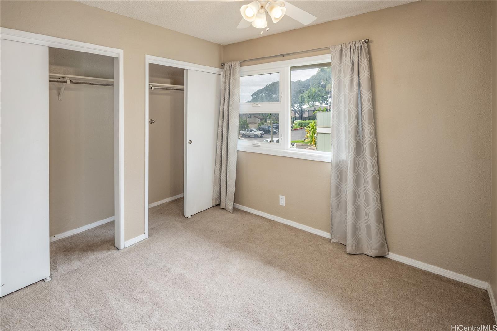 Sunday Open House 01/18/2026 12pm-2pm. Breathtaking Diamond Head, city, and ocean views! This spacious 3-bedroom, 1.5-bath townhome with two side by side parking stalls is located in highly desirable Palehua Gardens. Move-in ready and thoughtfully upgraded, the home features brand-new double-pane vinyl windows and custom sliding doors, modern kitchen cabinetry, and an upgraded split A/C system. The ground floor patio adds versatile living space, while the private lanai/deck offers the perfect spot to relax and enjoy the stunning scenery. A washer and dryer are conveniently included in the unit. Palehua Gardens provides a peaceful retreat with community amenities such as a swimming pool and basketball court. Ideally situated near freeway access, Kapolei’s extensive shopping and dining options, and just a short drive to the beautiful beaches of Ko Olina.