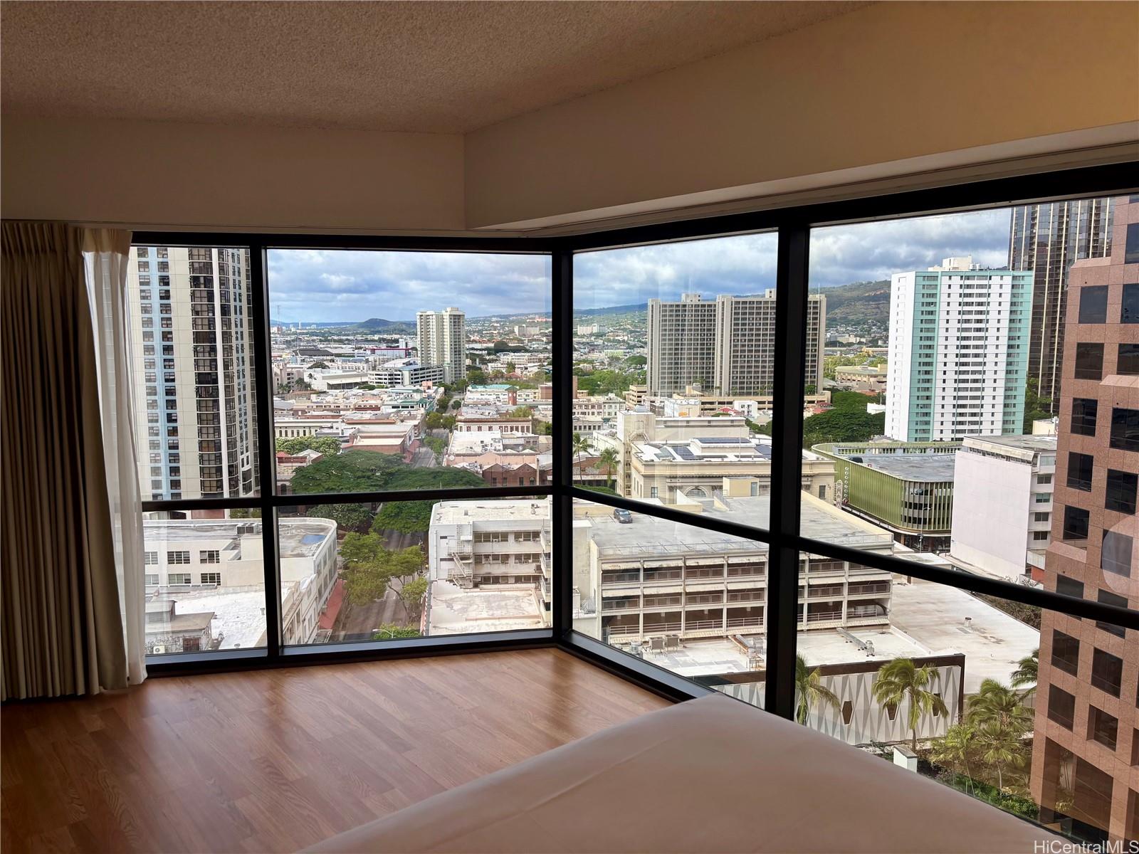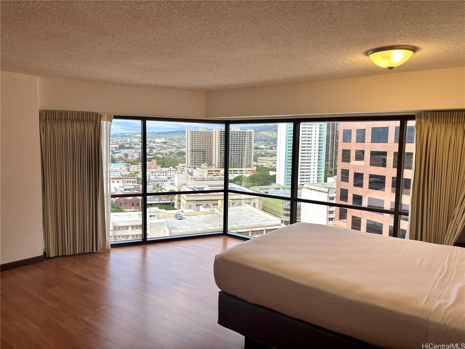 This Fee Simple 1 bdrm/1 bath/1 pkg unit located in the heart of Downtown Honolulu features floor to ceiling windows and amazing city views. This unit can be used as an owner residence or also as the perfect cashflow investment as either/both a long or short term rental. The location of this unit offers easy convenience to restaurants, shops, entertainment, banks, bus lines and more all within a short walking distance. This building includes a heated pool, 24hr security, a large community laundry space if needed, 5 large efficient elevators, and assigned/secured covered parking stall. The Monthly maintenance fee includes cable TV, hot water, internet service, sewer, water. Unit comes fully furnished with everything included in pictures and/or what is seen at showing. The unit is to remain in the hotel pool through the listing and can still remain after transfer of title. Showings of the unit are available between guest occupancy or through a scheduled appointment.