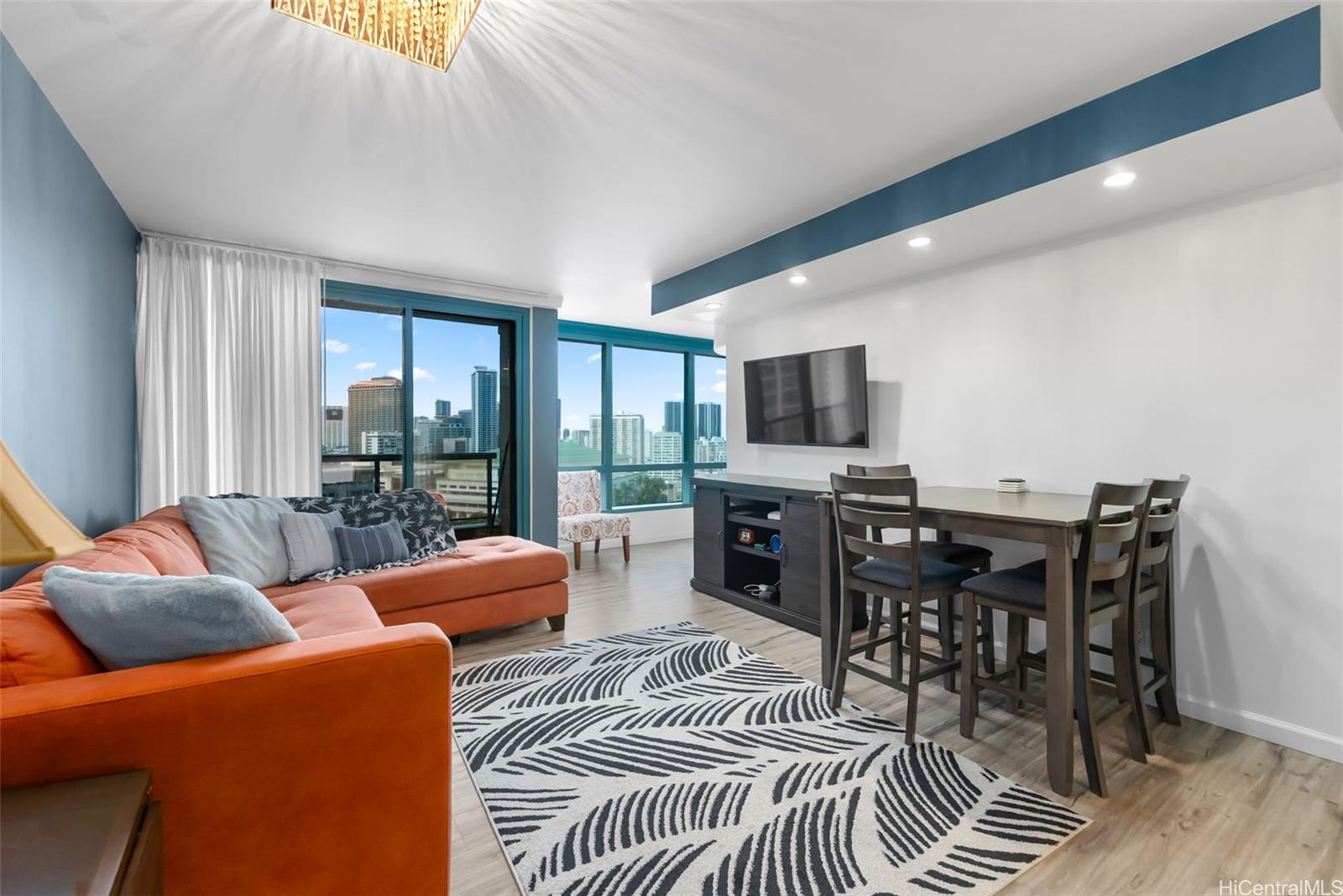 象徴的なワイキキランドマークの19階に位置する、魅力的な2ベッドルーム、2バスルームの完全家具付きレジデンスで、ワンランク上のアイランドライフをお楽しみください。セントラルエアコンを完備し、一年中快適にお過ごしいただけます。床から天井まで届く大きな窓からは、日の出、日の入り、街、山々の壮大な景色を一望でき、自然光がたっぷりと差し込みます。キッチンは、明るい白のキャビネットとステンレス製の家電が特徴で、リビングエリアと快適につながっています。朝のコーヒーを楽しんだり、夕暮れ時にくつろいだりするには、専用のバルコニーをご利用ください。広々としたプライマリースイートには、ダブルシンクの洗面台、独立したバスタブ、シャワーを備えた専用バスルームが備わっています。2つ目のベッドルームは、ゲスト用バスルームとバルコニーへのアクセスが容易で、ゲスト用またはホームオフィスとして柔軟にご利用いただけます。ワイキキランドマークは、複数のプール、スパ、フィットネスセンター、バーベキューエリア、美しく手入れされた敷地など、リゾートスタイルのアメニティで知られる高級ビルで、すべて24時間体制のセキュリティが完備されています。世界的に有名なビーチ、ショッピング、ダイニング、エンターテイメントに近い理想的なロケーションです。 2枚の写真をバーチャルステージング(強化)しました。