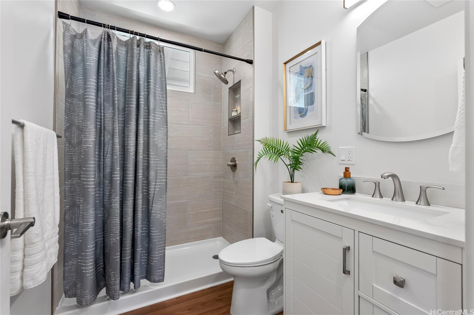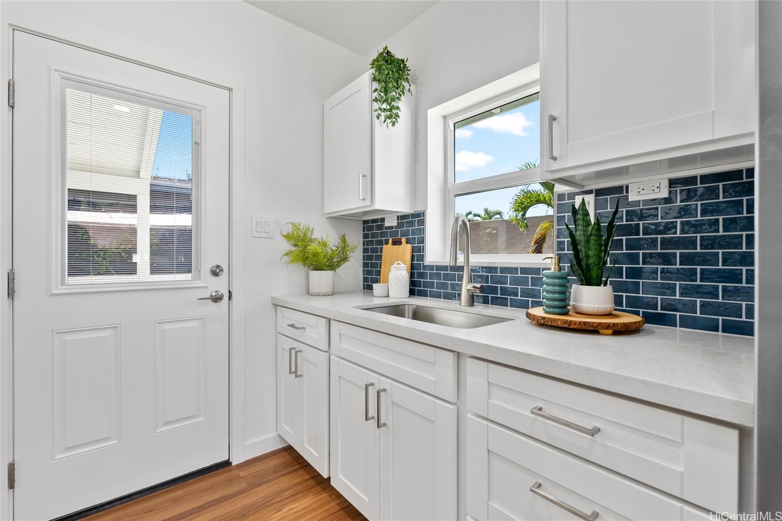 Welcome to 1281 California Ave #3, a fully renovated and redesigned 2bd/1ba home offering the feel of modern new construction with the charm of its original cottage style feel. Taken down to the studs and reimagined, this former home now features new exterior siding and trims, new windows, a new asphalt shingle roof, hurricane clips, full drywall, updated plumbing, and new electrical — essentially creating a modern home. The open-concept living area flows into a brand-new kitchen with stainless steel appliances, tile backsplash, new cabinetry, quartz countertops, and recessed lighting. Warm wood vinyl flooring runs throughout. The fully redesigned and renovated bathroom and large bedroom closets complete the interior. A new sliding door opens to a deck and fully fenced yard, plus a covered rear lanai for added living space. The enclosed two-car carport fits two full-size vehicles with room for storage. Set back from the street as the rear home down a private driveway, this property enjoys added privacy and a peaceful setting. No maintenance fees and an exceptional value in Wahiawa.