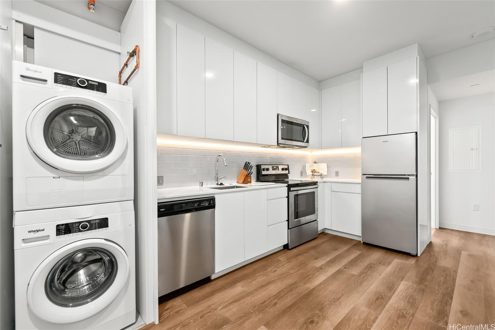 Lovingly maintained, Diamond Head–side residence in A‘ali‘i offering a quiet, shaded orientation and exceptional convenience. Unit #512 features a private lanai and a highly desirable lower-floor location, providing fast, easy access to the unit and an enhanced sense of security and safety. Upgrades include an owned EV charging outlet in the assigned parking stall (purchased for approx $15,000) and a separate walk-in storage room conveniently located on the same floor as the parking stall (purchased for approximately $21,450), ideal for bikes, boards, and seasonal items. Both upgrades add significant everyday functionality and value to this unit. The interior is move-in ready, recently refreshed with new paint and very well maintained throughout. The unit may be sold fully furnished, offering flexibility for owner-occupants, second-home buyers, or investors. 'A‘ali‘i offers resort-style amenities including the signature rooftop Sky Deck with ocean views, fitness center, yoga room, pools, spa, cabanas, BBQ areas, indoor/outdoor lounges, dog park, and more. Pet-friendly and ideally located near Whole Foods, Ward Village dining and shopping, Kewalo Basin, and Ala Moana Beach Park.