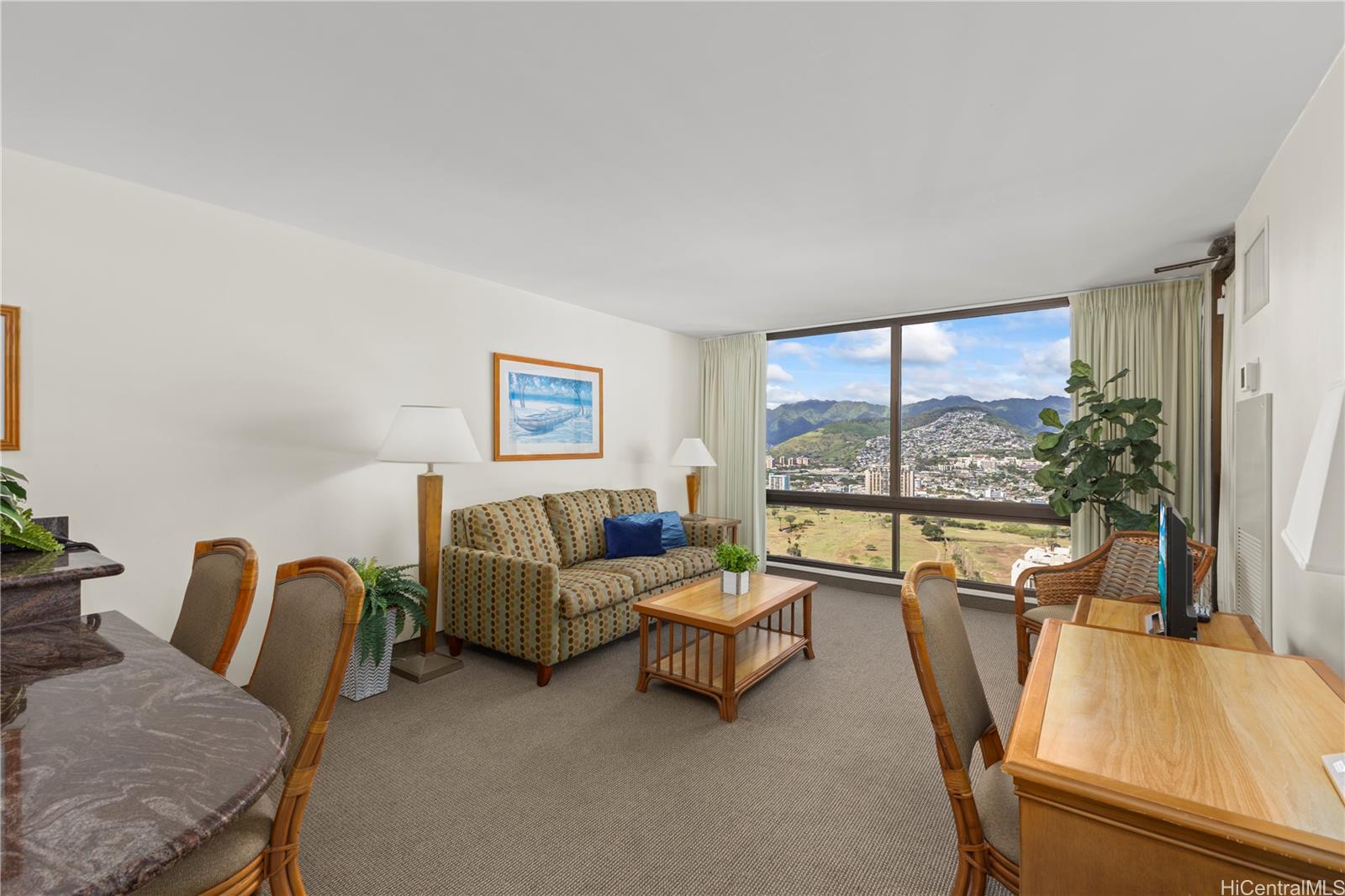 ペントハウス階の1階下にある合法的な短期賃貸物件です。高層階に位置し、家具完備ですぐに入居可能な1ベッドルームのユニットから美しい景色をお楽しみいただけます。ココクレーター、海、ダイヤモンドヘッド、アラワイゴルフコース、マノアバレー、そして遠くに見えるハワイ大学キャンパスを眺めながら、プライベートバルコニーで朝食をお楽しみください。現在アストン賃貸プログラムに参加しているこのアパートメントは、有効な非適合使用証明書(NUC)を保有しています。3D Matterportフロアプランをオンラインでご覧ください。世界的に有名なワイキキビーチから徒歩圏内に位置し、サーフィン、日光浴、シュノーケリング、オーシャンフロントのダイニングに簡単にアクセスできます。近隣の観光スポットには、アラワイゴルフコース、カパフルの地元レストラン、カピオラニコミュニティカレッジ、ファーマーズマーケット、ホノルル動物園、水族館、アラモアナセンター、活気あふれるカカアコ地区などがあります。このエリアは公共交通機関やトロリー路線で簡単にアクセスできます。ワイキキサンセットは、各階にスイミングプール、バーベキューエリア、サウナ、ジム、パティオ/デッキ、ランドリー設備など、様々なアメニティを備えています。共用設備として、駐車スペース1台分(指定なし)が付属しています。ワイキキで合法的なバケーションレンタルをお探しの方にとって、絶好の機会です。